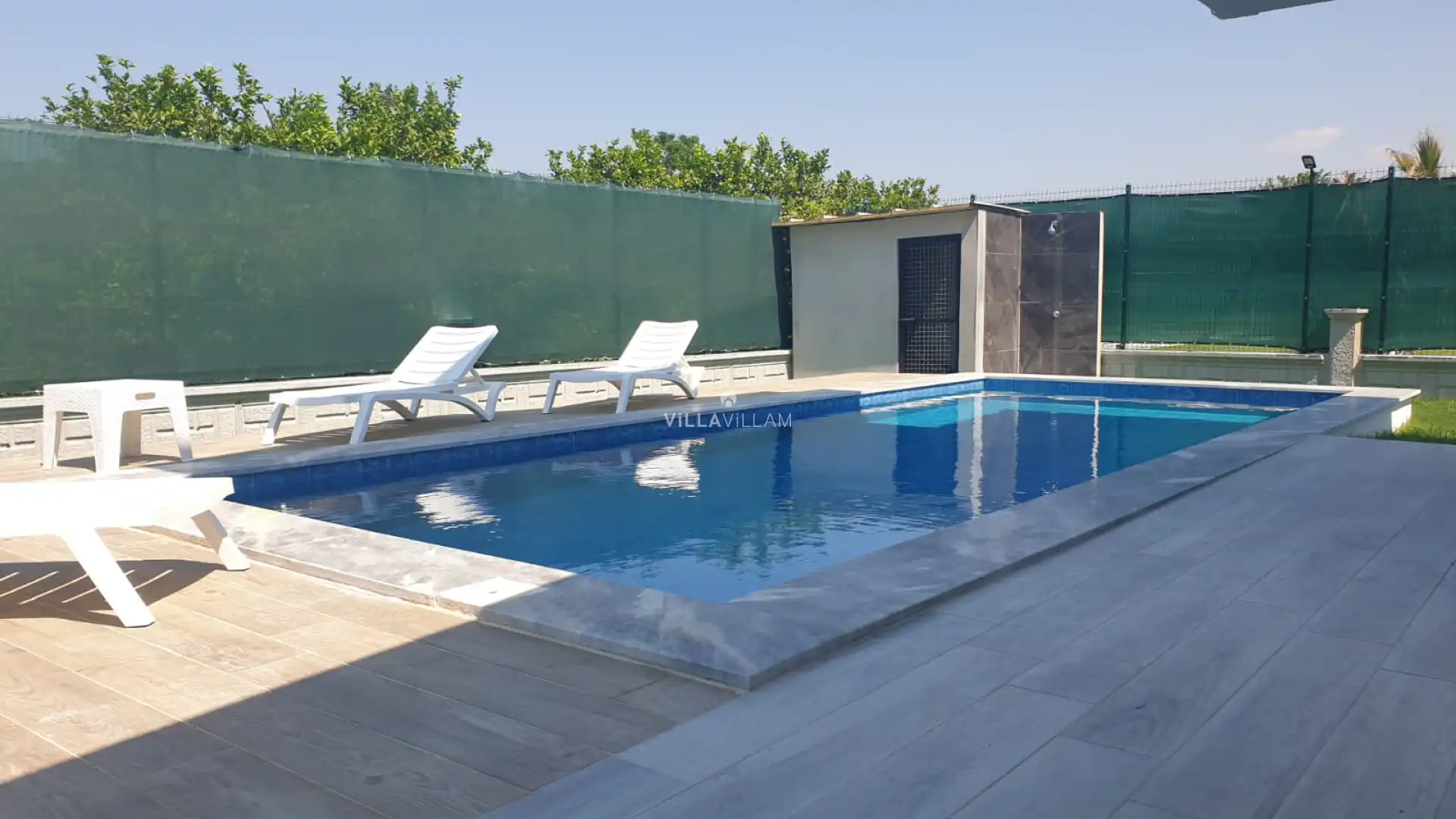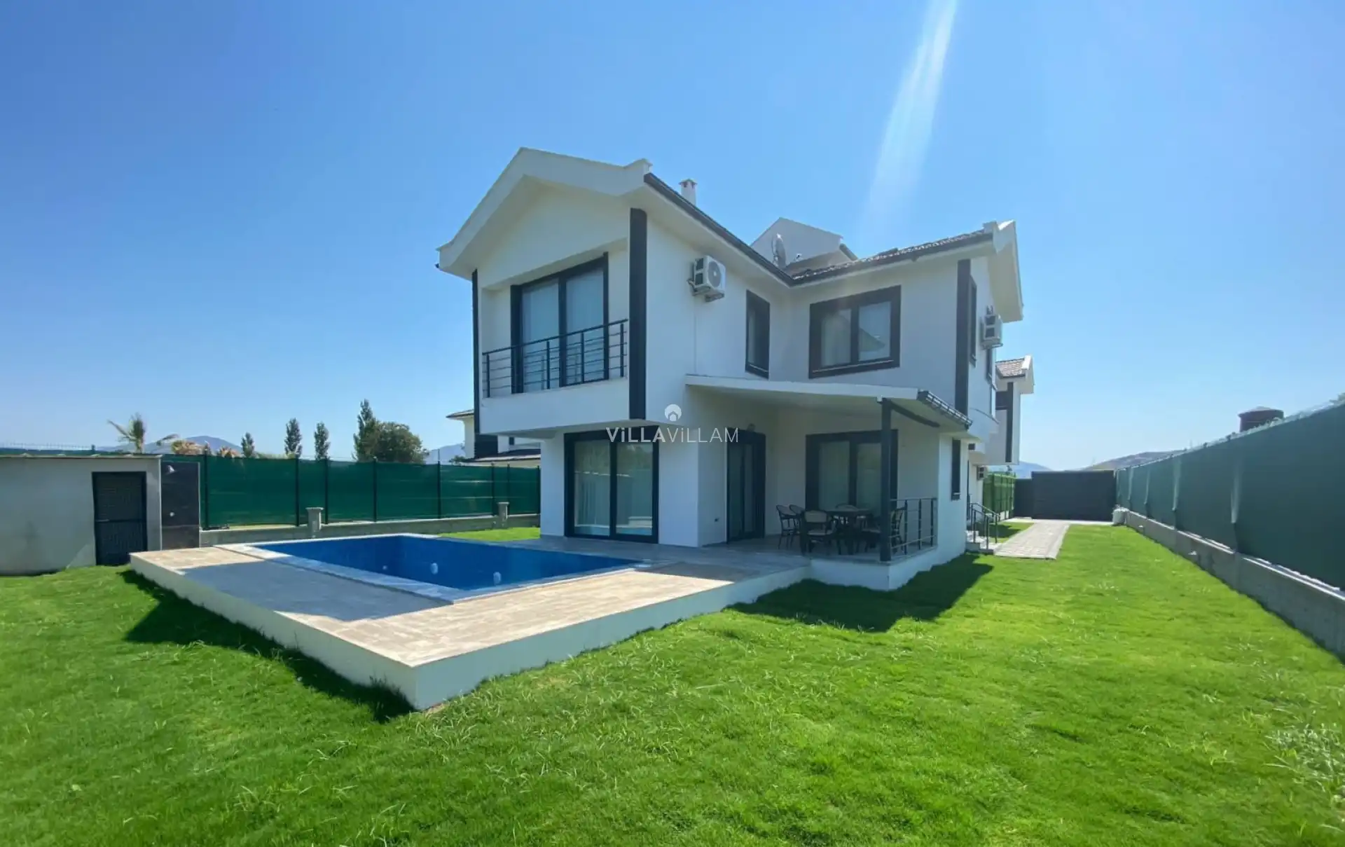Havuz ve bahçe alanında oturma grubu, şezlong takımı ve barbekü alanı sayesinde keyifli bir tatil sizleri beklemektedir. Evinizdeki konforu aratmayacak ferah oturma odası ve tam donanımlı mutfağı; birinci yatak odasında çift kişilik yatak ve ebeveyn banyosu; ikinci yatak odasında iki tek kişilik yatak ve banyo; üçüncü yatak odasında iki tek kişilik yatak ve banyo yer almaktadır.