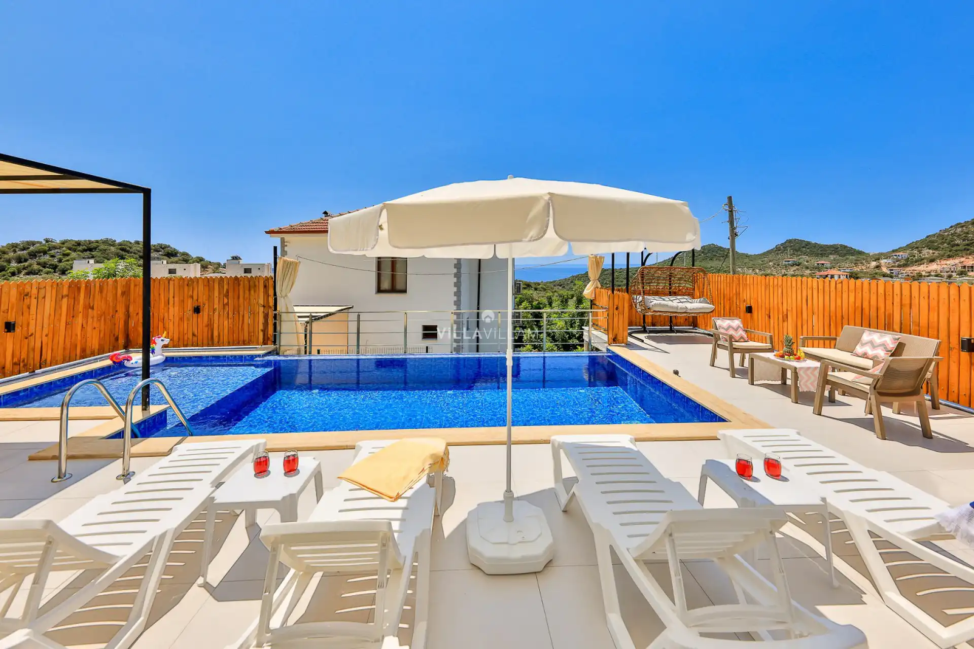 Doğa ve kısmen deniz manzarasına sahip villada, kapasiteye uygun oturma alanı, şezlong takımı ve barbekü yer almaktadır. Havuz terasına açılan konforlu oturma odası ile ihtiyaçlarınızı karşılayacak donanımlı bir mutfak bulunmaktadır. Bir yatak odasında çift kişilik yatak, ebeveyn banyosu ve jakuzi; ikinci yatak odasında ise iki tek kişilik yatak ve ebeveyn banyosu mevcuttur.