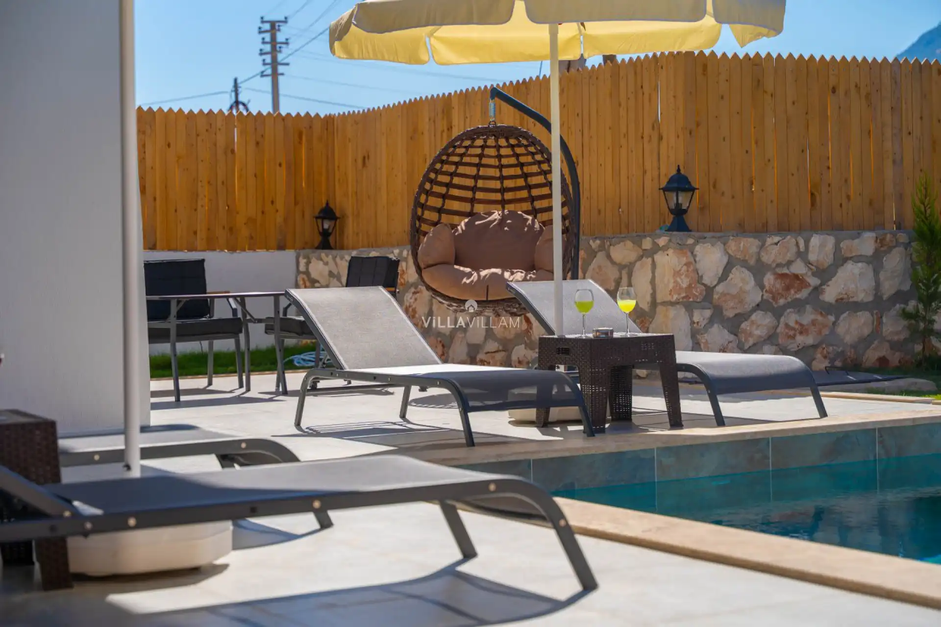 Kaş Andifli bölgesinde bulunan villa 3 yatak odası ile 6 kişilik konaklama kapasitesine sahiptir. Geniş yaşam alanları ila ön plana çıkan villa, kalabalık aile ve arkadaş grupları için popüler villa seçenekleri arasındadır.