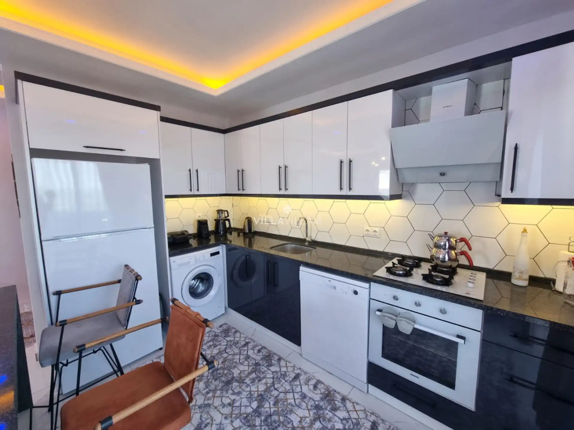 Havuz bahçesinde kapasiteye uygun şezlong takımı, oturma grubu ve barbekü alanı ile keyifli bir alana sahiptir. Havuz ve bahçesine açılan şık ve konforlu oturma odası, tam donanımlı açık mutfağı; bir yatak odasında çift kişilik yatak, ebeveyn banyosu ve jakuzi; diğer yatak odasında da iki tek kişilik yatak ve banyo bulunmaktadır. Konumu itibariyle merkeze ve turizm noktalarına kolaylıkla ulaşabileceğiniz villa, sizlere konforlu bir tatil vaadetmektedir.