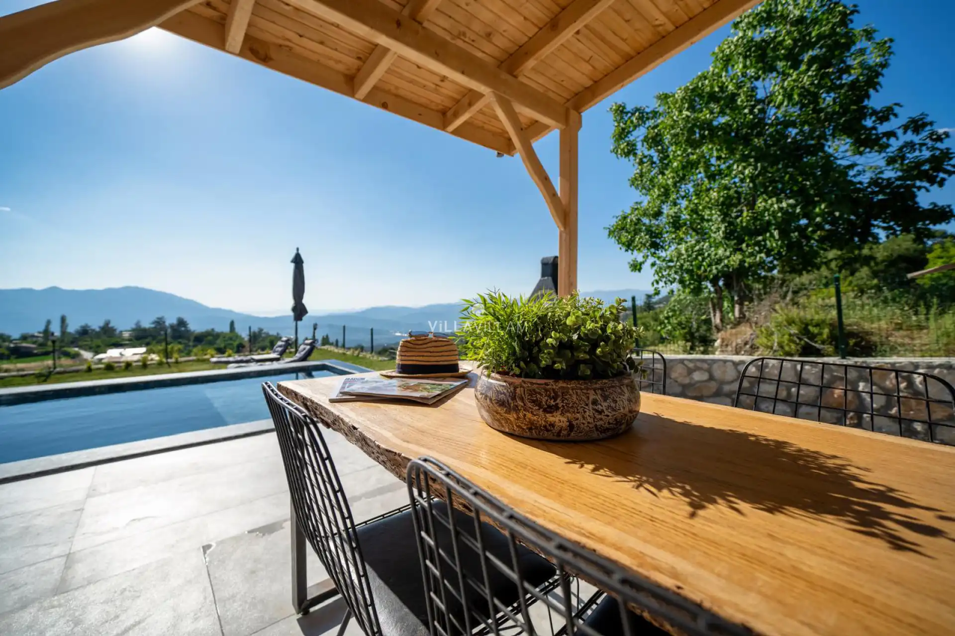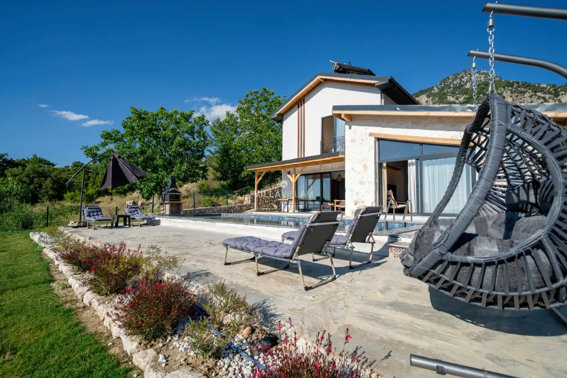 Evinizde hissettirecek mimarisi ve dekorasyonu ile şehir kargaşasından ve koşturmasından sıyrılabileceğiniz, dinlenme noktanız olacak doğa içerisindeki villa; sevdikleriniz ile birlikte keyifle ve güvenle vakit geçirebileceğiniz unutulmaz bir tatil fırsatı sunmaktadır. Sırtını yeşile dayamış, önünde ise manzaraya sahip olan; misafirlerini sakinlik ve huzur ile mest edecek villada kapasiteye uygun oturma alanı, şezlong takımı ve barbekü alanı; havuz terasına açılan konforlu oturma odası ve ihtiyaçlarınızı karşılayacak tam donanımlı mutfağı bulunmaktadır. Birinci yatak odasında çift kişilik yatak, ebeveyn banyosu ve jakuzi; ikinci yatak odasında iki tek kişilik yatak ve banyo; üçüncü yatak odasında ise çift kişilik yatak ve banyo bulunmakta olup, tüm detaylarıyla keyifli bir tatil imkânı sunmaktadır.
