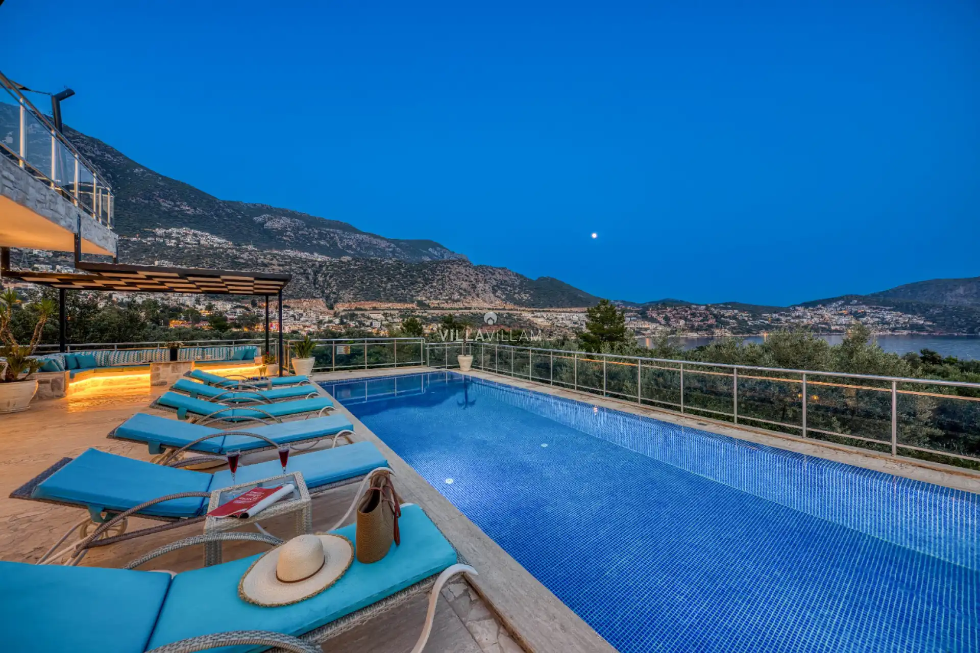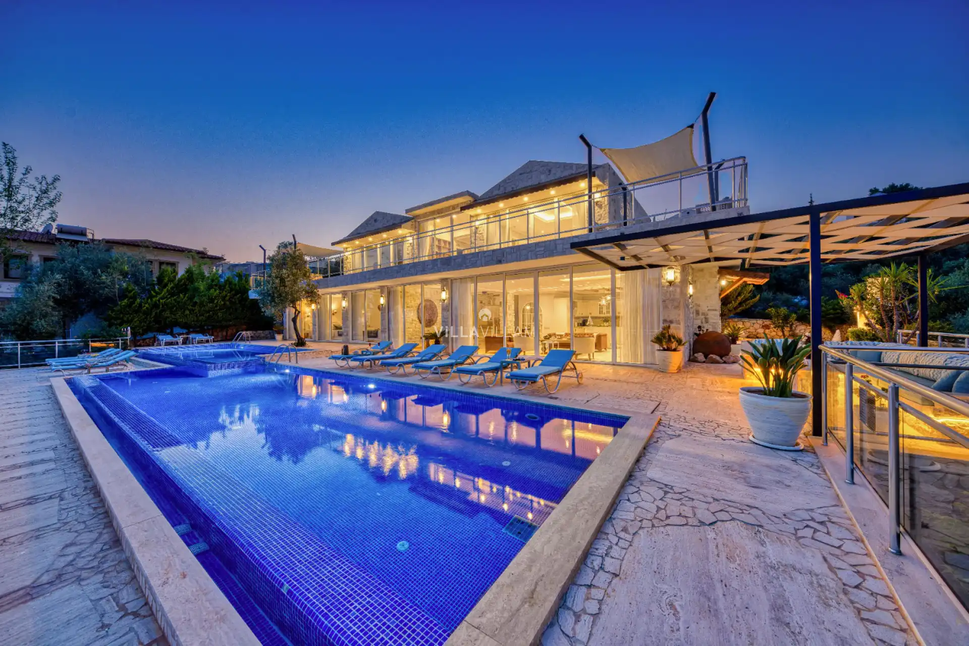 Kalkan Merkez'de bulunan villa, 6 yatak odasıyla 12 kişilik konaklama kapasitesi sunmaktadır. Eşsiz deniz manzarasının yanı sıra çift havuzu ve taş mimarisiyle ön plana çıkan villa, kalabalık aileler ve arkadaş grupları tarafından tercihlerin başında gelmektedir.
