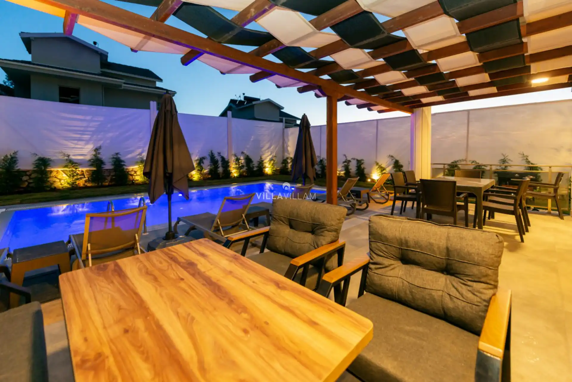 Fethiye merkez, Ölüdeniz ve eğlence mekanlarına oldukça yakın konumuyla da tercih sebebi olan villanın iç mekanı da dış mekan kadar ferah ve geniş bir yaşam alanı sunmaktadır.