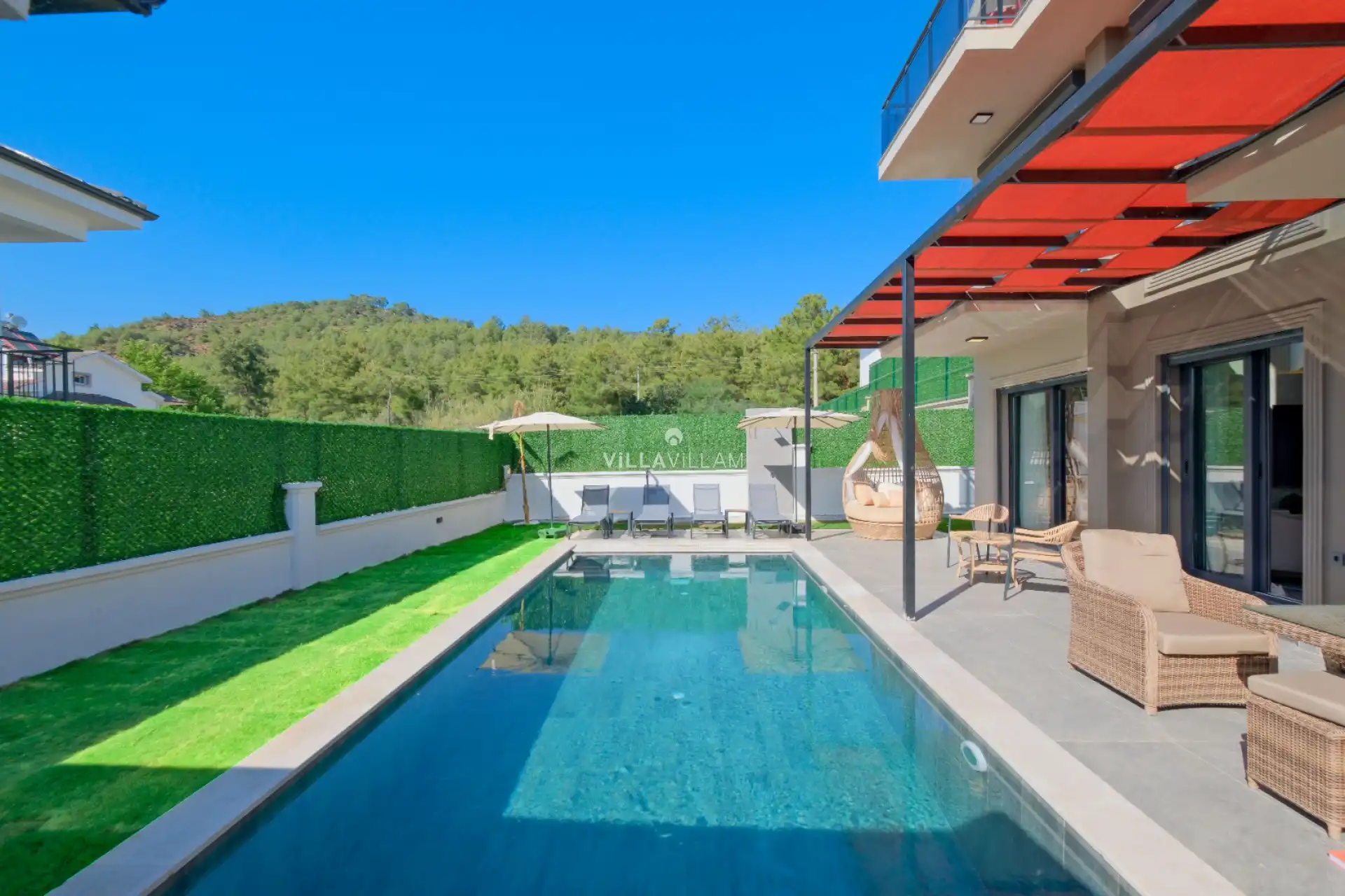 Fethiye Çiftlik bölgesinde bulunan villa, 4 yatak odasıyla 8 kişilik konaklama kapasitesi sunmaktadır. Denize yakın konumu, jakuzi ve saunası ile villa, çekirdek aileler, arkadaş grupları ve kalabalık aileler için uygun seçenekler arasındadır.