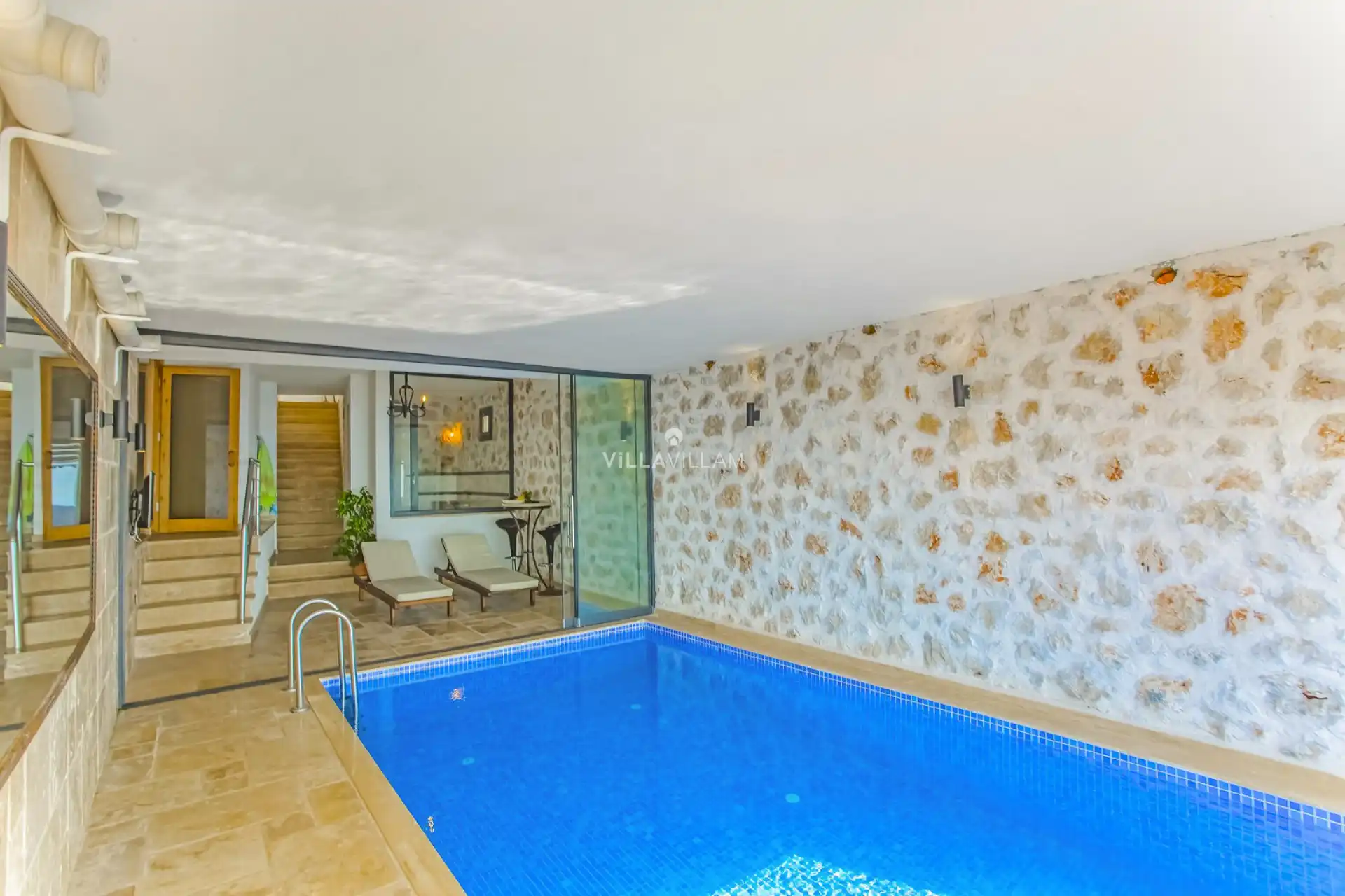 Kalkan Kördere bölgesinde bulunan villa, 3 yatak odasıyla 6 kişilik konaklama kapasitesi sunmaktadır. Kapalı ısıtmalı havuz, sauna, hamam ve jakuzi gibi ayrıcalıklarıyla yaz kış tatil fırsatı sunan villa; kalabalık aile ve arkadaş grupları için uygundur.