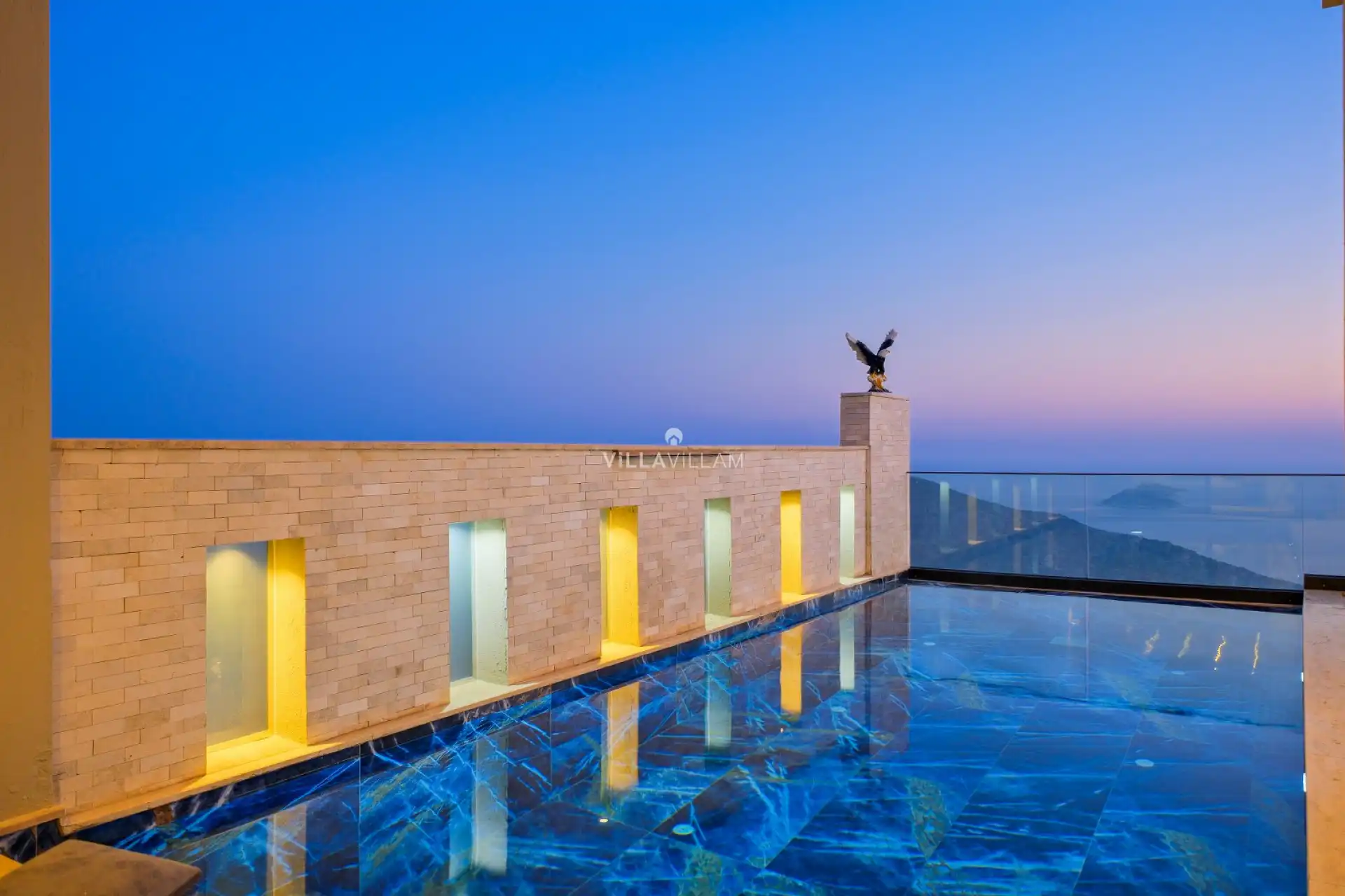 Eşsiz deniz manzarasına sahip havuz terasında şezlong takımı, oturma grubu, salıncak ve barbekü alanı bulunurken iç mekanda ise konforlu oturma odası ve tam donanımlı açık mutfağı; birinci yatak odasında çift kişilik yatak, fransız küvet ve ebeveyn banyosu; ikinci yatak odasında iki tek kişilik yatak ve banyo bulunmaktadır.