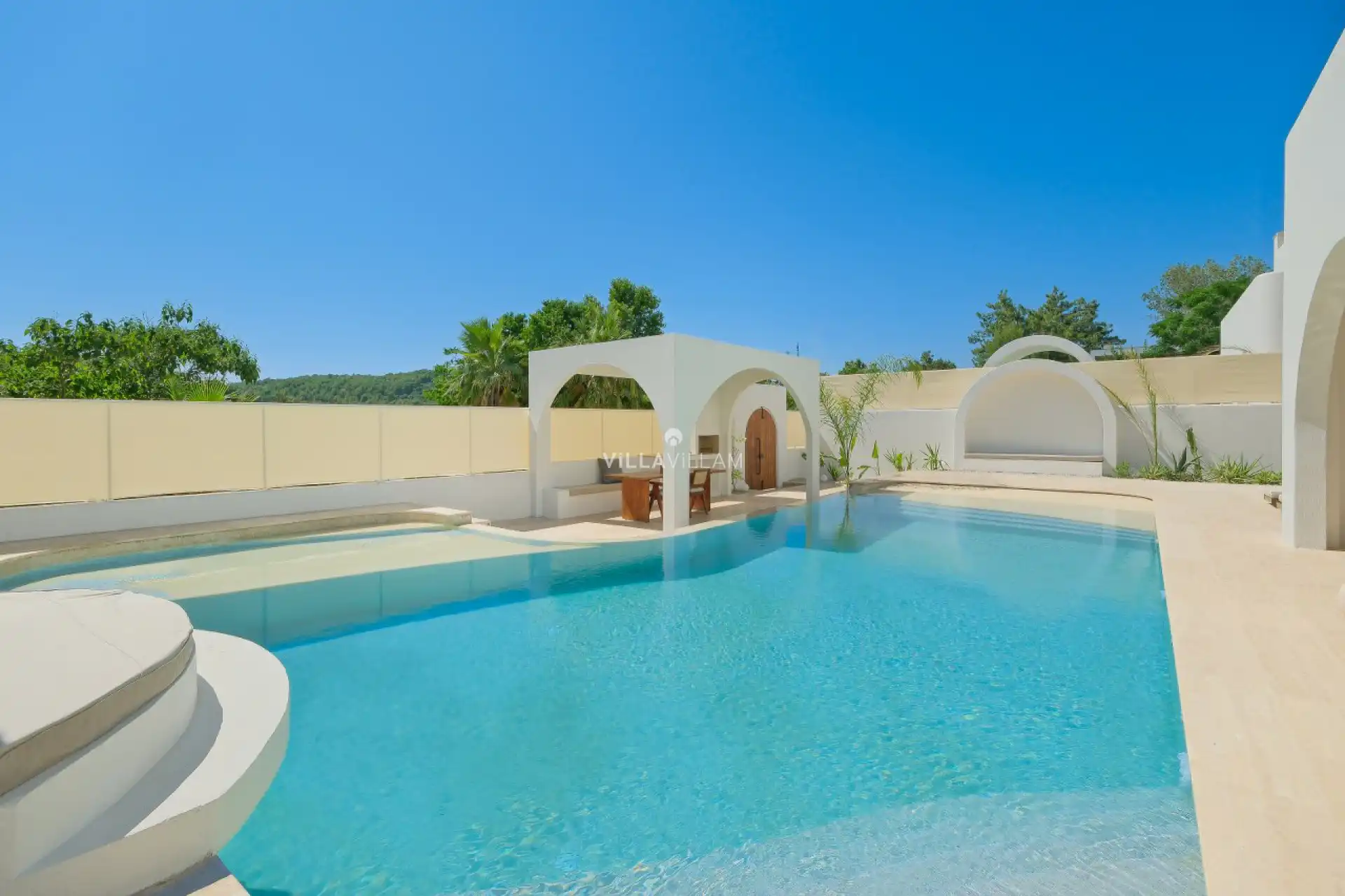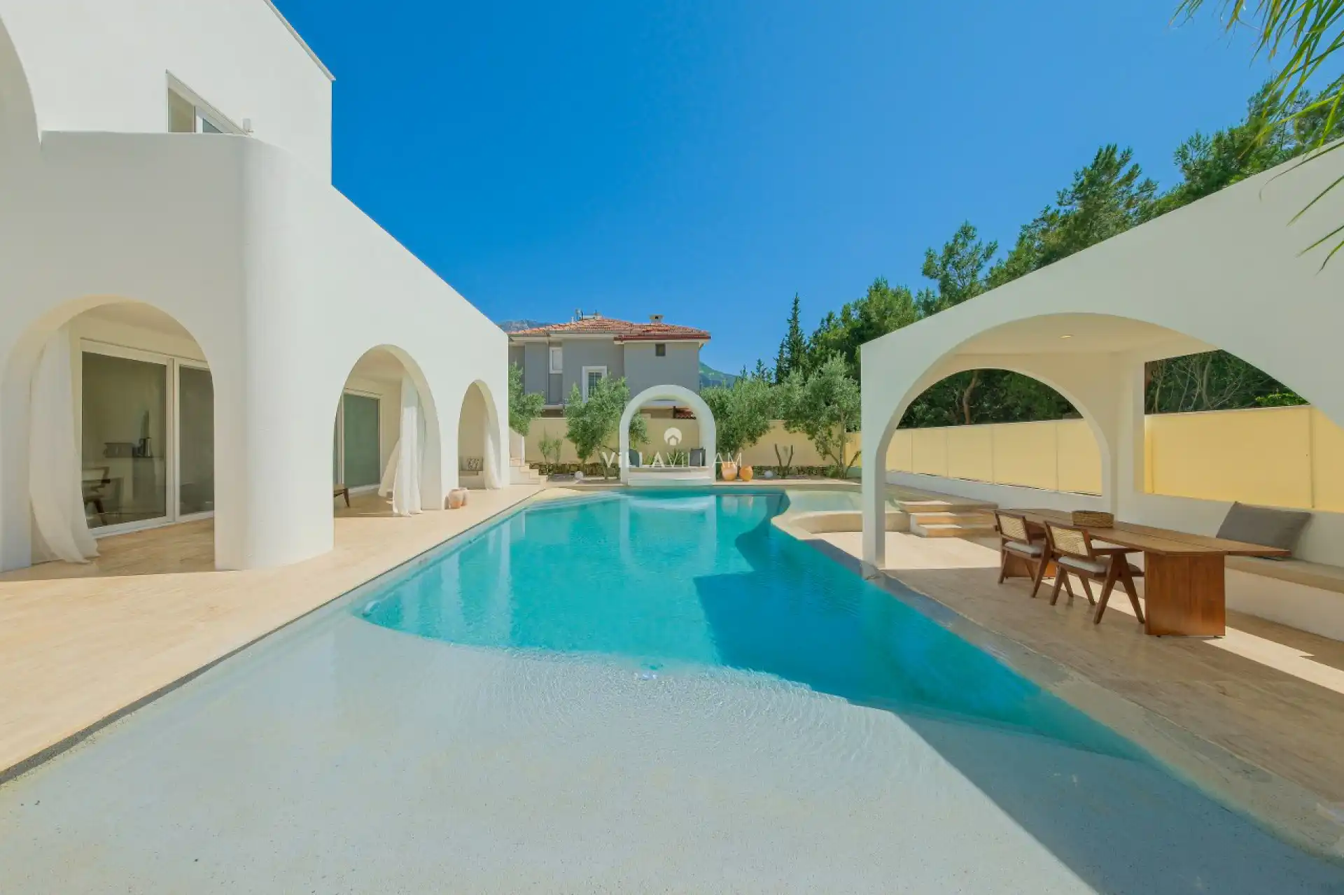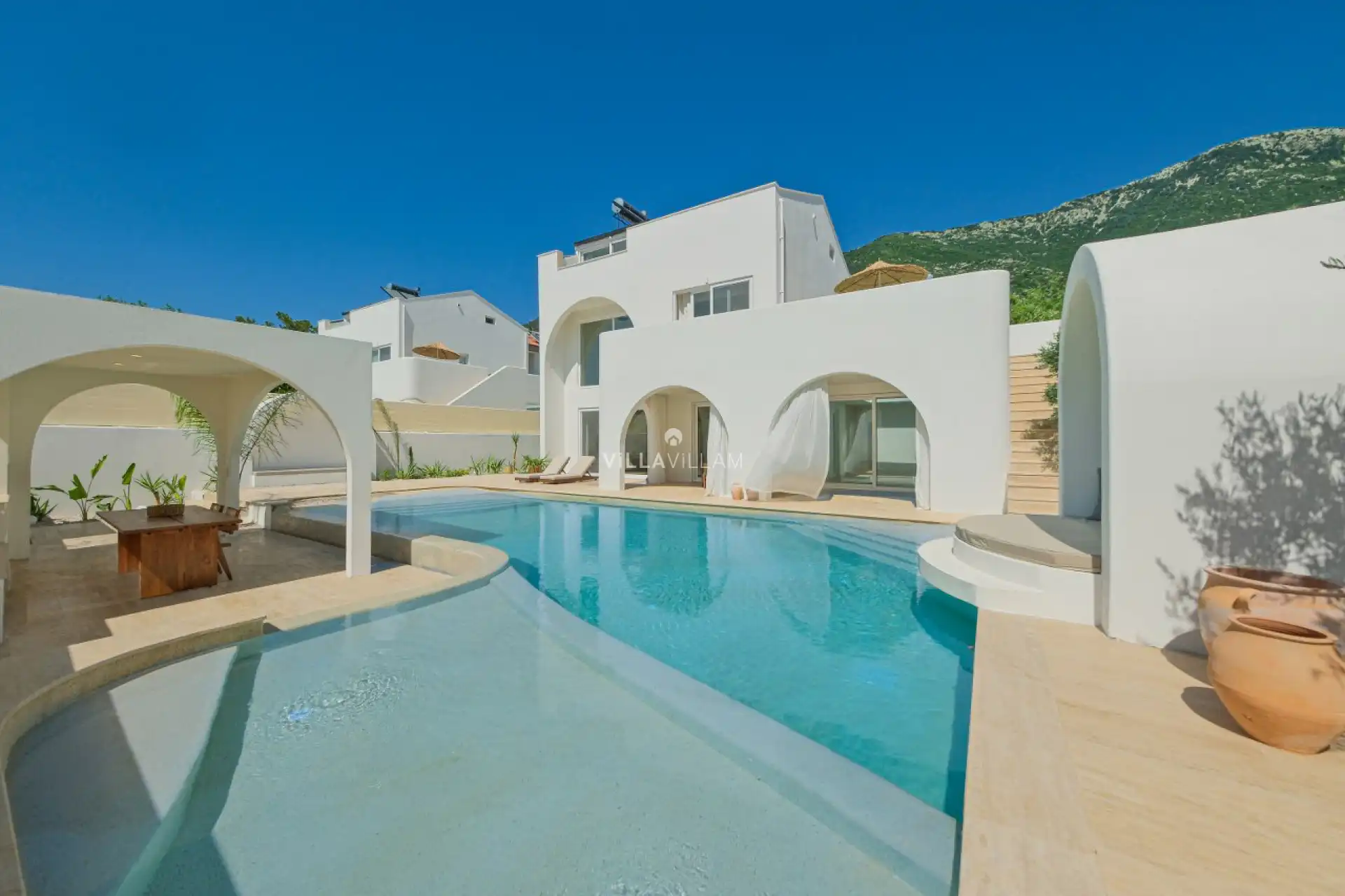 Tatiliniz için tüm detayları düşünülerek dizayn edilen villamızda, doğa manzarasına karşı güneşlenip yüzebileceğiniz havuz terasında; şezlong takımı, oturma grubu, barbekü ve mini golf sahası yer almaktadır. İç mekânda ise havuz terasına açılan konforlu bir oturma odası ve tüm ihtiyaçlarınıza karşılık verecek açık mutfak bulunmaktadır. Birinci yatak odasında çift kişilik yatak, Fransız küvet ve ebeveyn banyosu; ikinci yatak odasında çift kişilik yatak ve ebeveyn banyosu; üçüncü yatak odasında ise iki tek kişilik yatak ve banyo yer almaktadır.