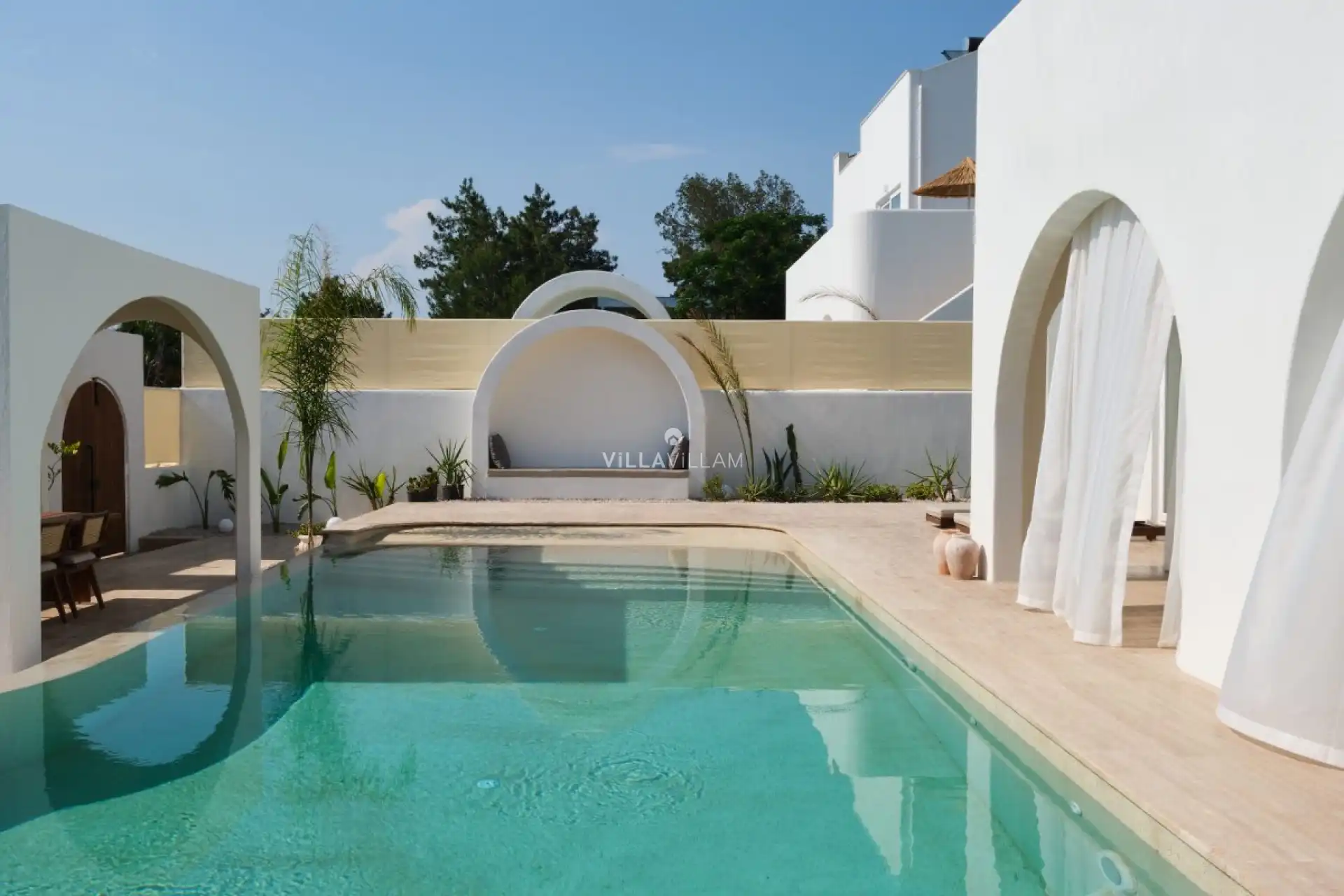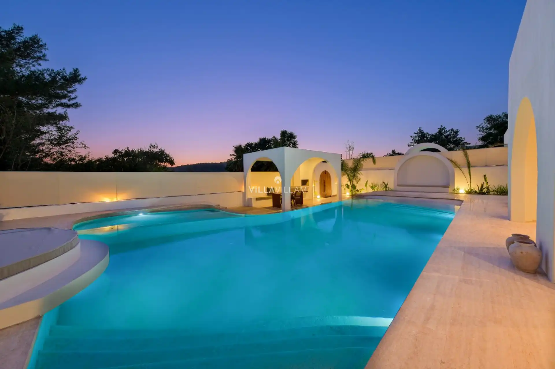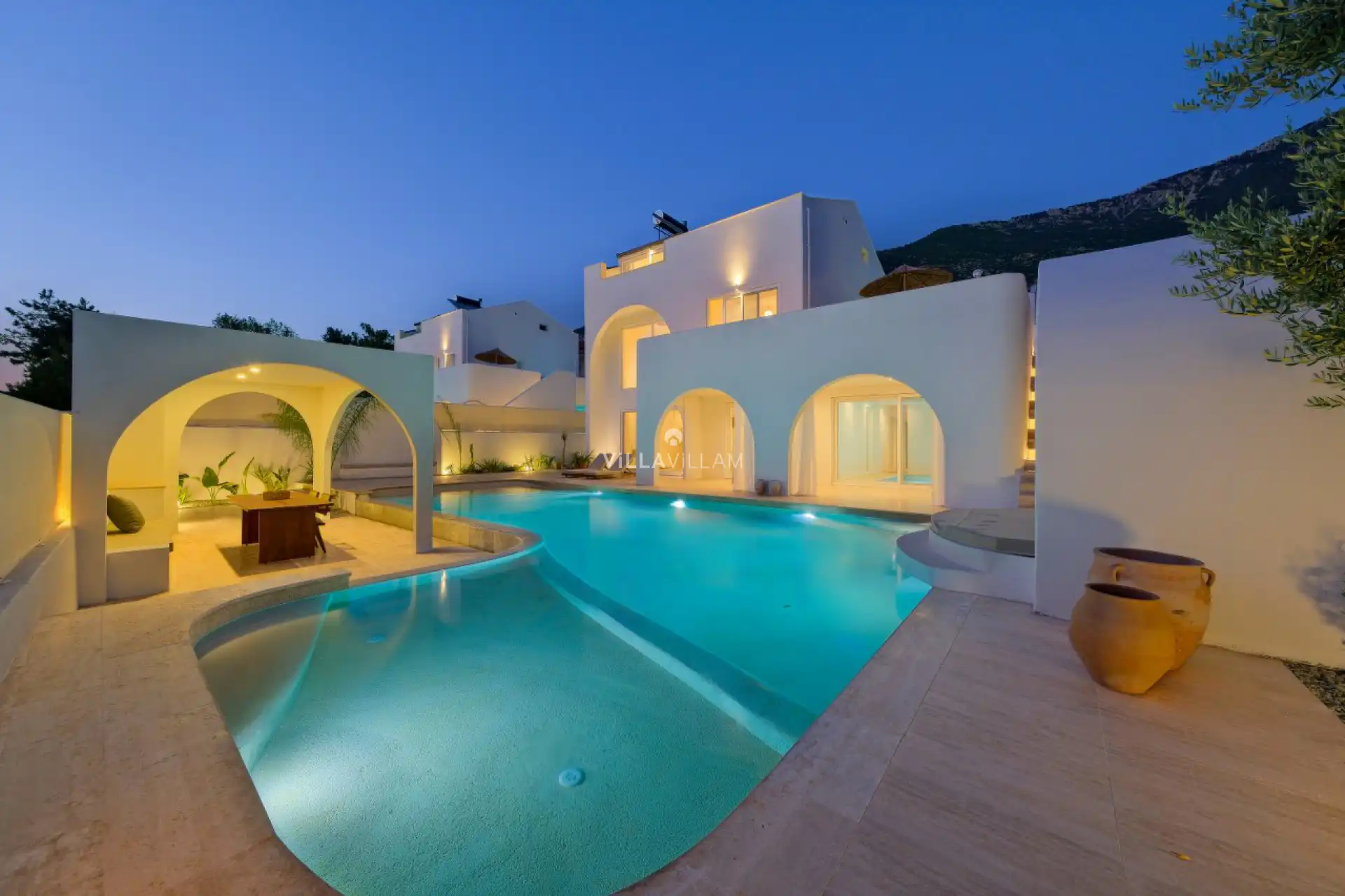 Tatiliniz için tüm detayları düşünülerek dizayn edilen villamızda, doğa manzarasına karşı güneşlenip yüzebileceğiniz havuz terasında; şezlong takımı, oturma grubu, barbekü ve mini golf sahası yer almaktadır. İç mekânda ise havuz terasına açılan konforlu bir oturma odası ve tüm ihtiyaçlarınıza karşılık verecek açık mutfak bulunmaktadır. Birinci yatak odasında çift kişilik yatak, Fransız küvet ve ebeveyn banyosu; ikinci yatak odasında çift kişilik yatak ve ebeveyn banyosu; üçüncü yatak odasında ise iki tek kişilik yatak ve banyo yer almaktadır.