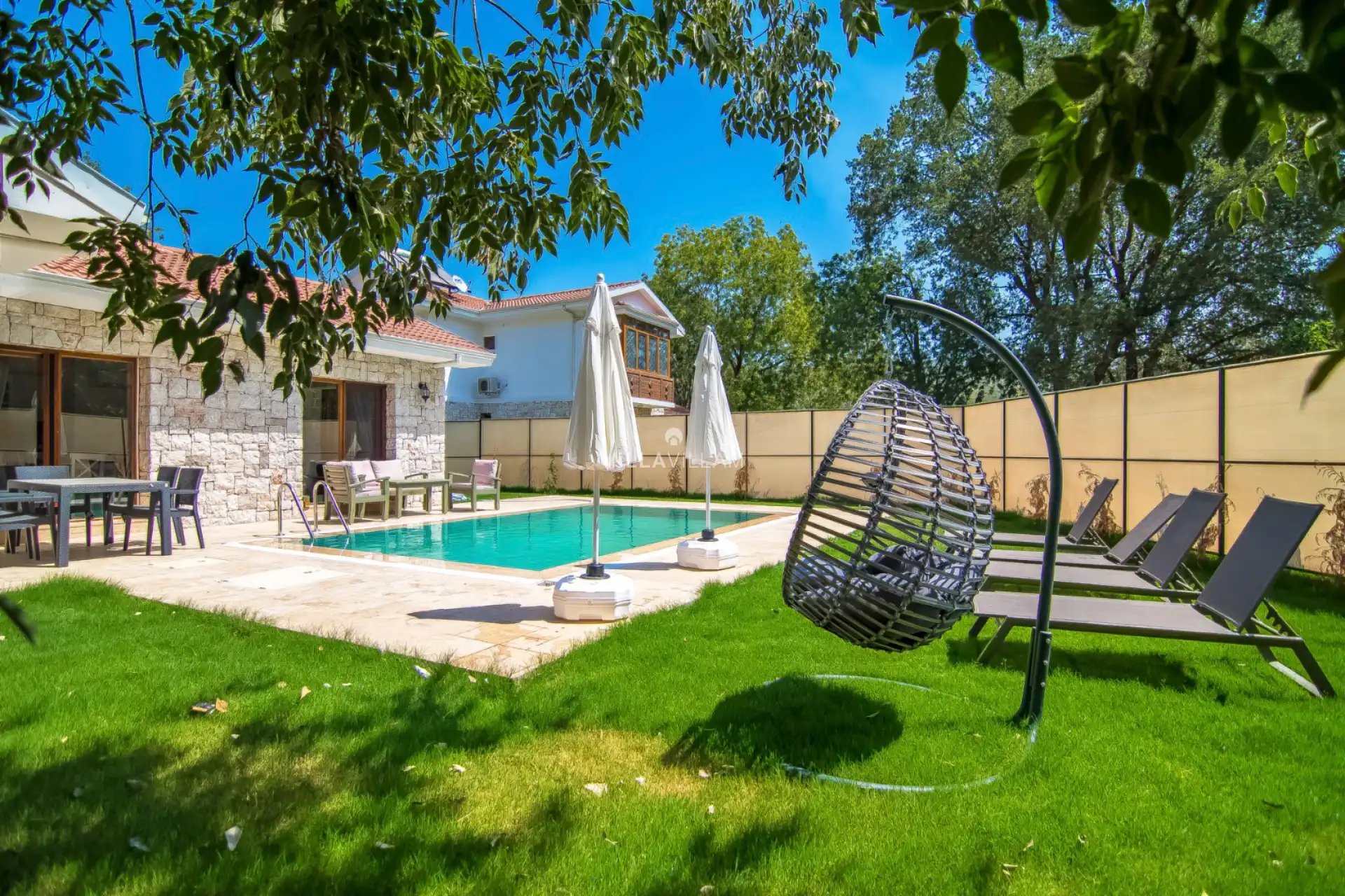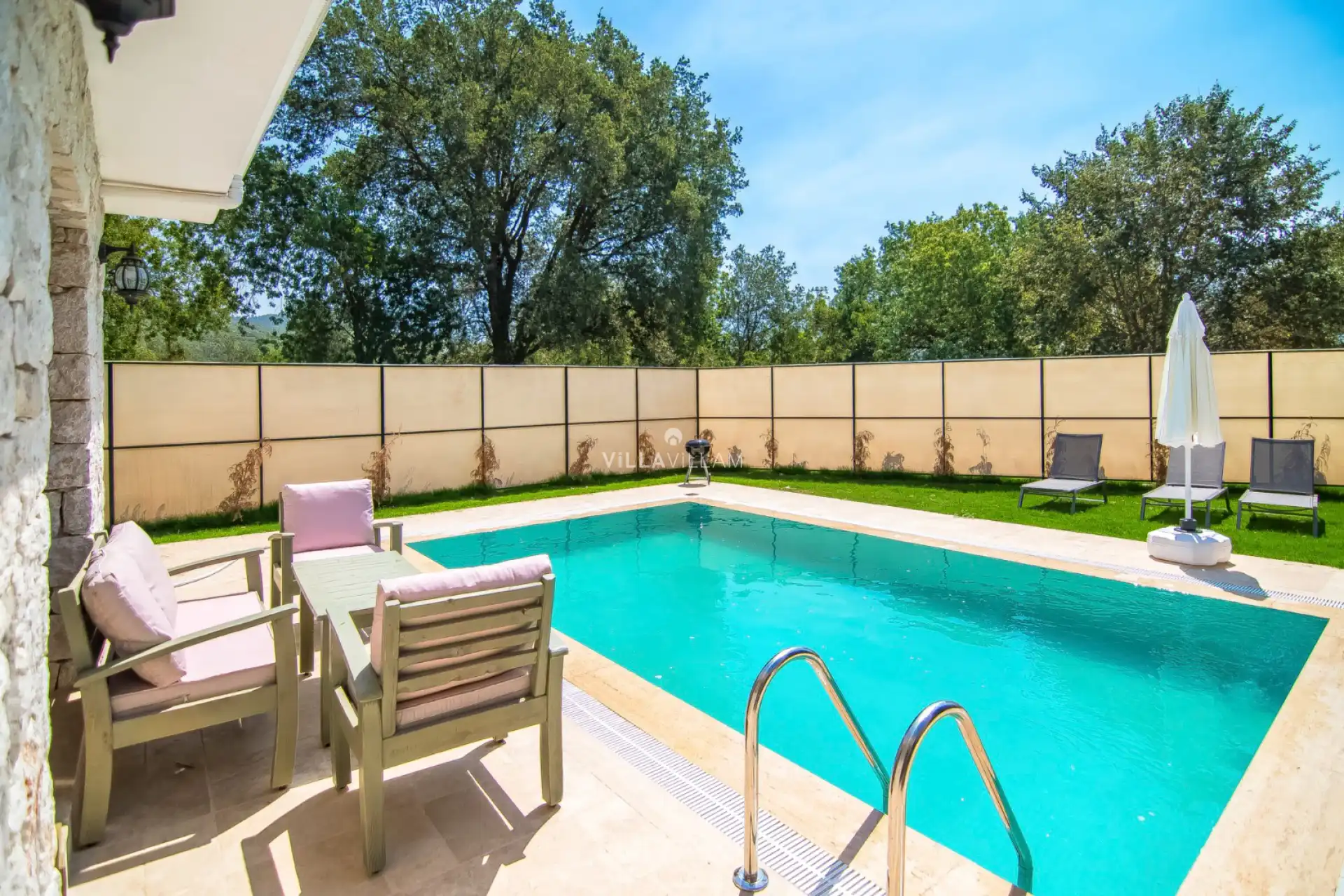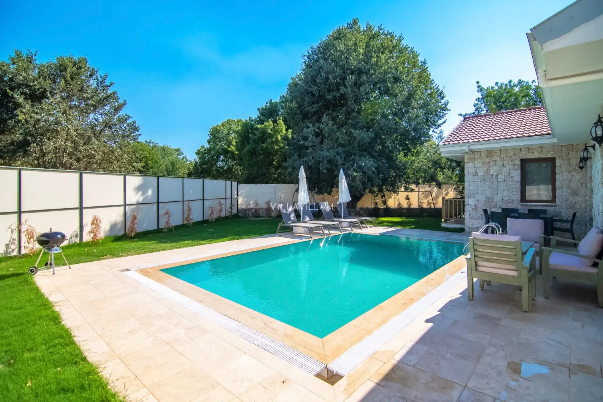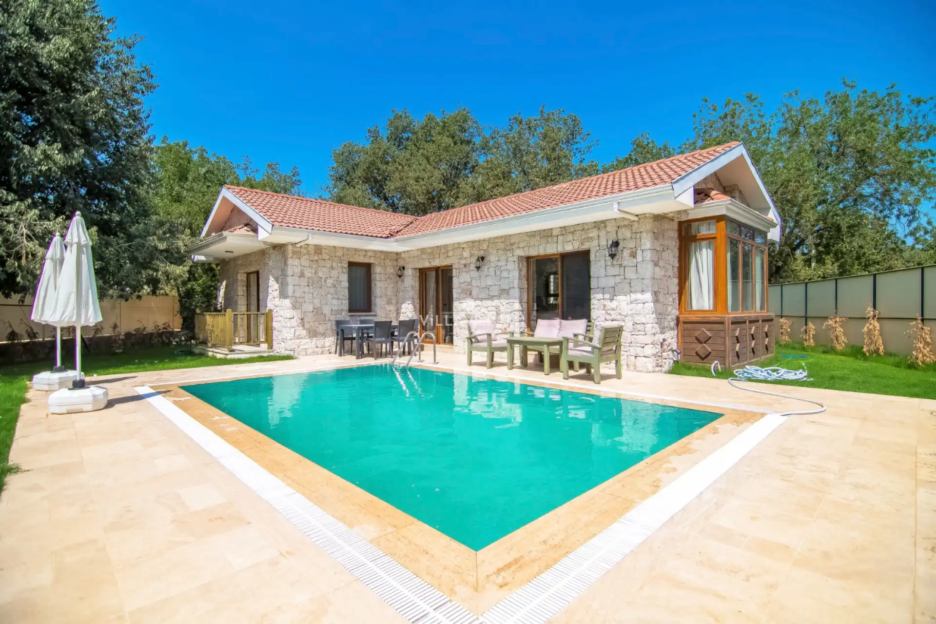 Kayaköy'ün doğasında tatil planlarınızın vazgeçilmezi olacak villamız tüm yıl beklediğiniz koşturmadan ve kargaşadan uzak sevdikleriniz ile birlikte keyifle ve güvenle vakit geçirebileceğiniz unutulmaz bir tatil fırsatı sunmaktadır. Kapasiteye uygun şezlong takımı, oturma grubu ve barbekü alanı; havuz terasına açılan konforlu oturma odası, ihtiyaçlarınızı karşılayacak tam donanımlı mutfağı bulunmaktadır. Birinci yatak odasında bir çift kişilik yatak ve ebeveyn banyosu; ikinci yatak odasında bir çift kişilik yatak ve salonda ortak kullanım banyosu bulunmakta olup bütün detayları ile keyifli bir tatil imkanı sunmaktadır.