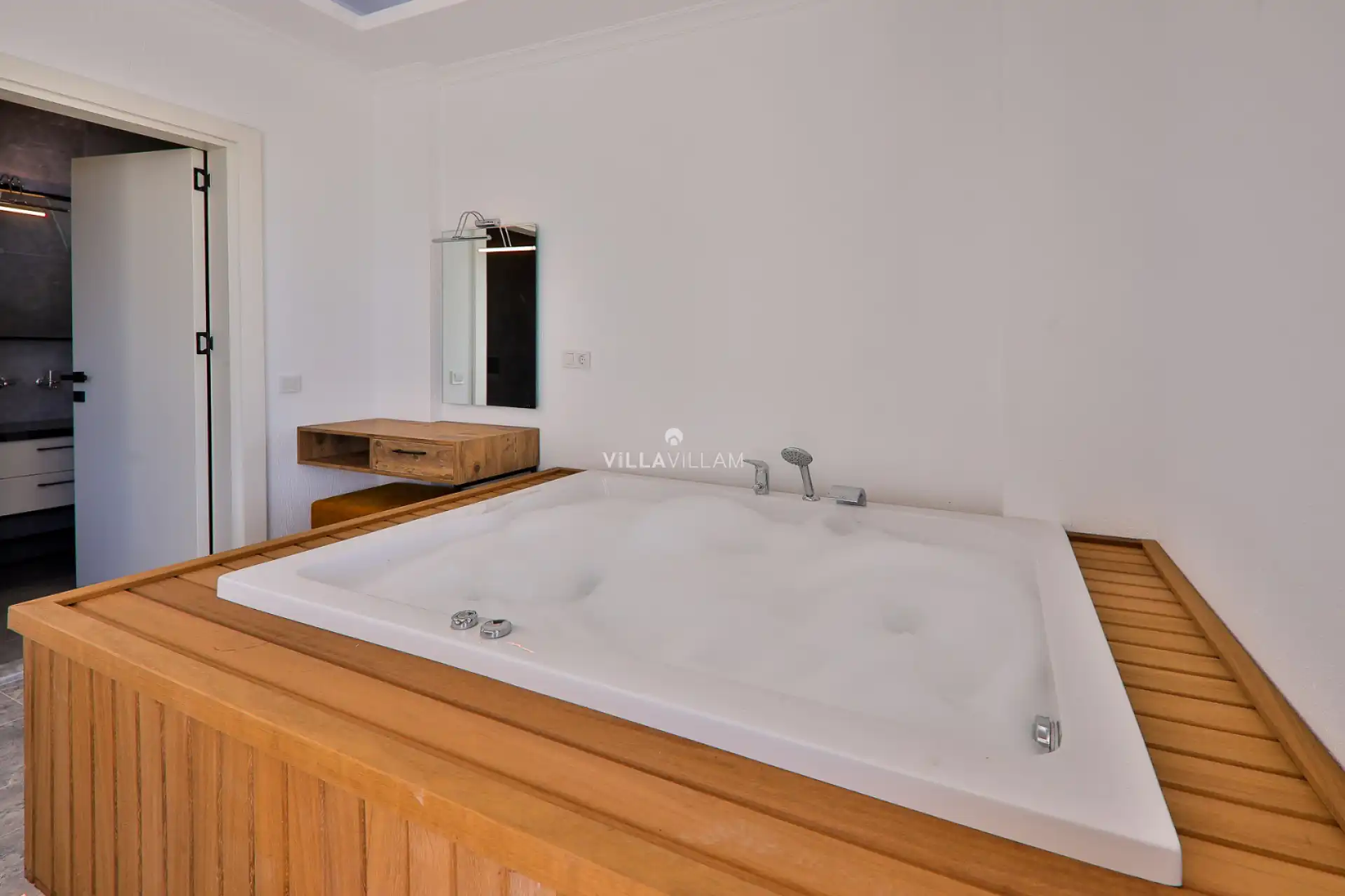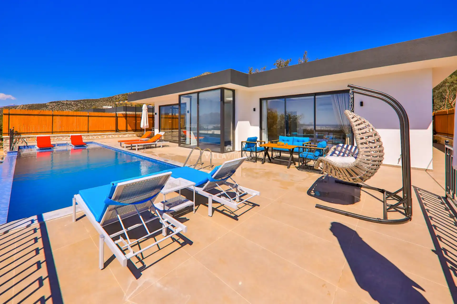 Kalkan'ın muhteşem doğasında, şehir manzarasına karşı sakin konumlu villa; balayı tatilinizin gözdesi olmaya adaydır. Şirin, keyifle vakit geçirebileceğiniz bahçe ve havuz alanı ile donanımları sayesinde villanın iç mekân alanları oldukça konforlu ve ferah bir atmosfer sunmaktadır. Havuz terasına açılan, zevkle döşenmiş konforlu oturma odası ve donanımlı mutfağı; birinci yatak odasında çift kişilik yatak, ebeveyn banyosu ve jakuzi; ikinci yatak odasında ise iki tek kişilik yatak ve banyo bulunmaktadır. İçerisinde bulunan ısıtmalı havuz, jakuzi ve sauna seçenekleri ile misafirlerine yaz-kış tatil imkânı sunmaktadır.