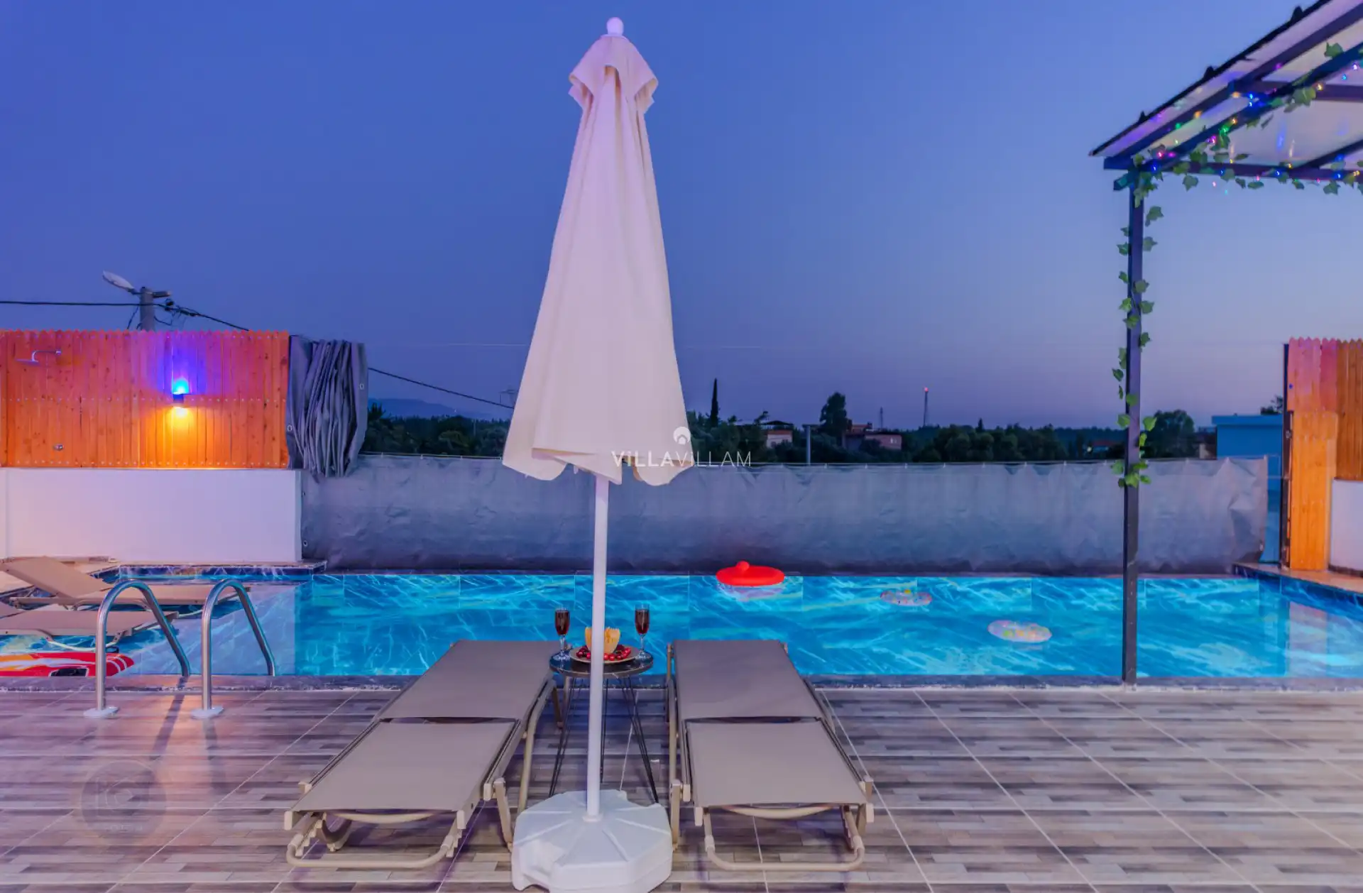 Doğayla iç içe, sakin ve huzurlu bir ortamda yer alan villa, şehir merkezine ve denize araçla kısa bir mesafede konumlanmaktadır. Kaliteli vakit geçirmek isteyen misafirler için her detayı özenle planlanmış bu özel villa, unutulmaz bir tatil deneyimi sunmak üzere siz değerli misafirlerini ağırlamayı beklemektedir.