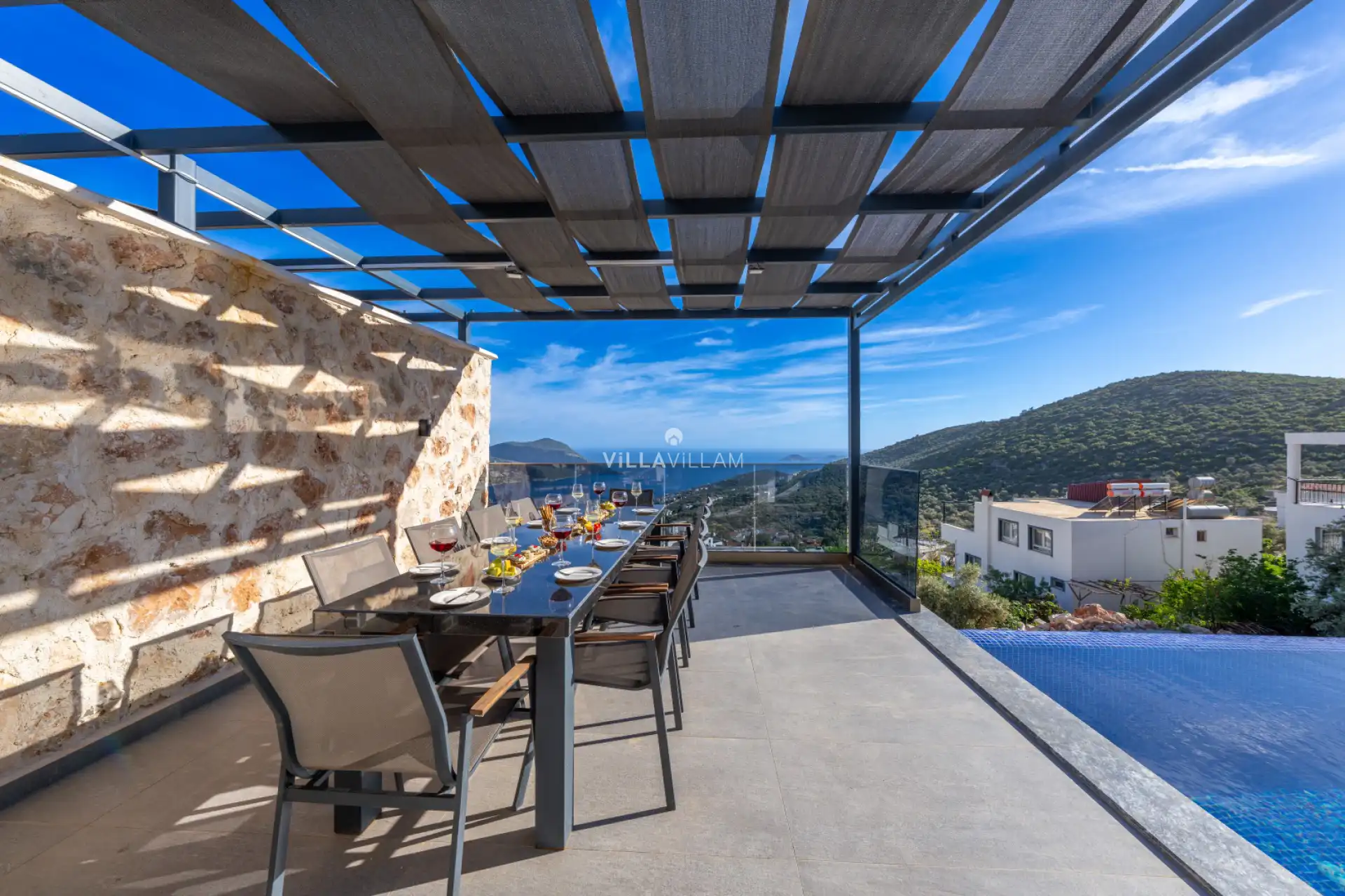 Merkezi konumda yer alan villa, ulaşım bakımından kolaylık sağlayacak; manzarasıyla da büyüleyecektir. Kalkan manzarasına doyacağınız, uçsuz bucaksız deniz manzarasında gün batımının tadına varacağınız bu villa, konforlu bir tatil için siz değerli misafirlerini ağırlamayı beklemektedir.