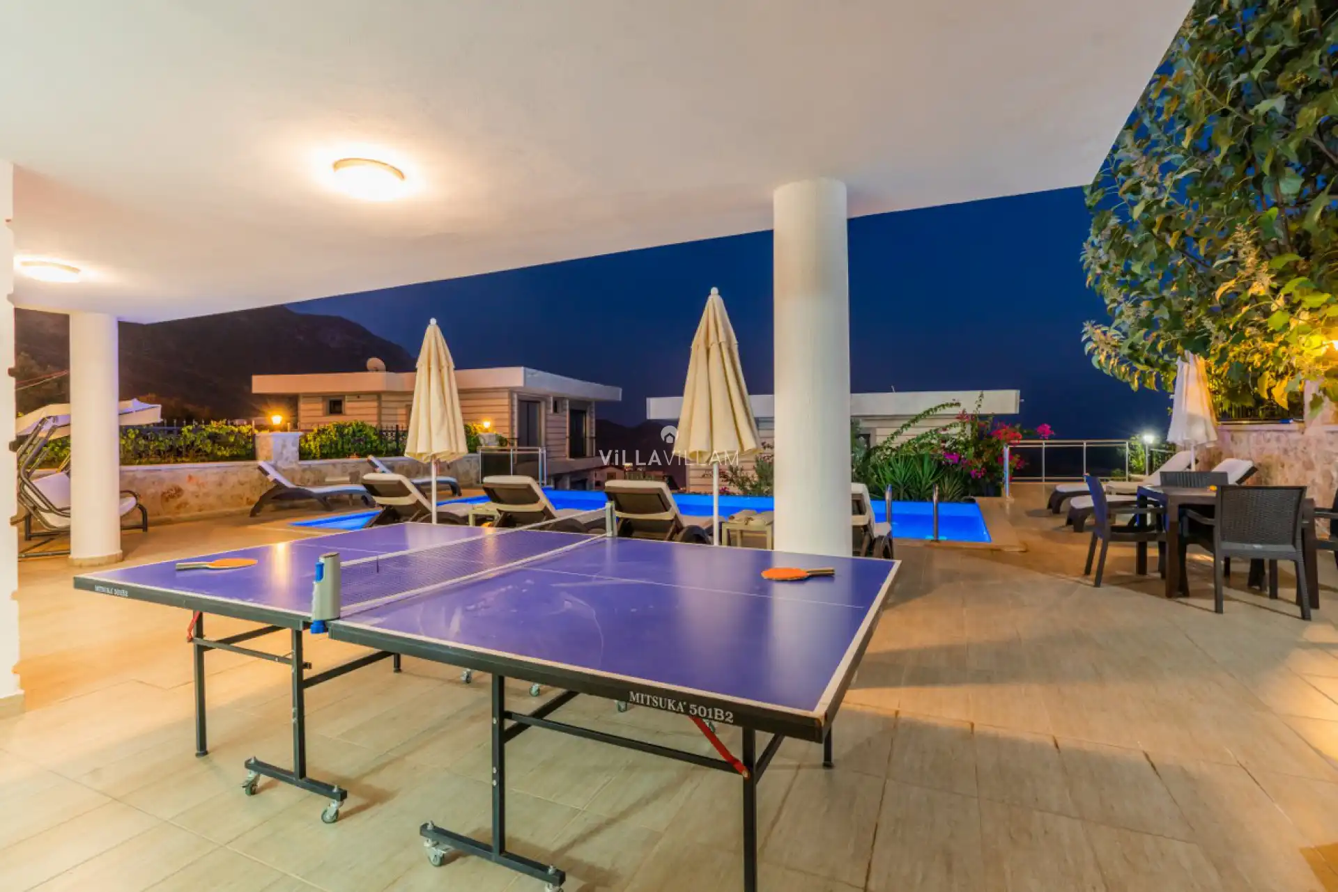 Tatilinize renk katacak havuz terasında kapasiteye uygun şezlong takımı, oturma grubu, masa tenisi ve barbekü alanı ile keyifli bir alana sahiptir. İç mekanda konforlu oturma odası ve tam donanımlı açık mutfağı; birinci yatak odasında çift kişilik yatak, jakuzi ve ebeveyn banyosu; ikinci ve üçüncü yatak odasında bir çift kişilik yatak ve banyo; dördüncü ve beşinci yatak odasında iki tek kişilik yatak ve banyo bulunmaktadır.