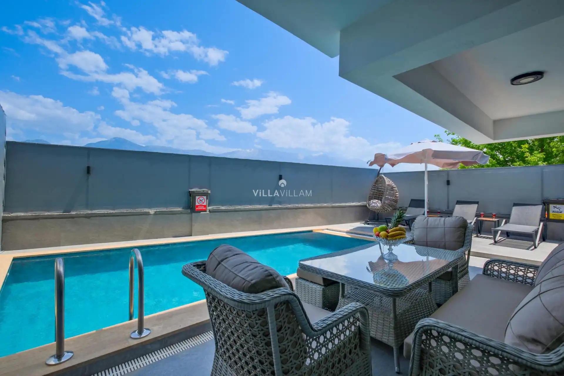 Fethiye Seydikemer bölgesinde bulunan villa, 3 yatak odasıyla 6 kişilik konaklama kapasitesi sunmaktadır. Modern tasarımlı, jakuziye sahip villa, kalabalık aileler ve arkadaş grupları için ideal seçenekler arasındadır.