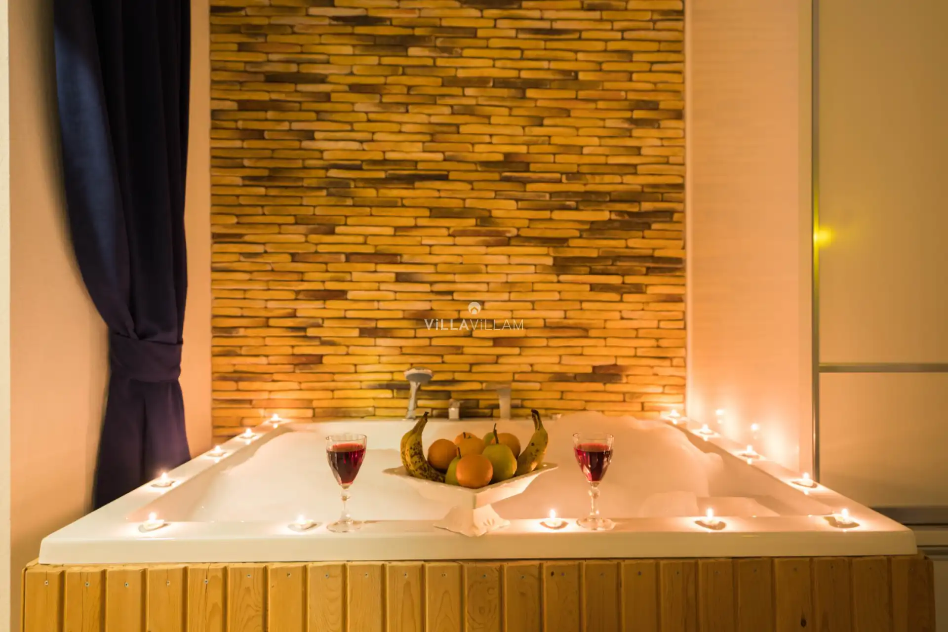 Korunaklı havuz terasına açılan oturma odası donanımlı açık mutfağı bulunan villanın bir yatak odasında çift kişilik yatak jakuzi ve ebeveyn banyosu; diğer yatak odasında iki tek kişilik yatak bulunmaktadır. Konforlu bir tatil için her detay düşünülmüştür.
