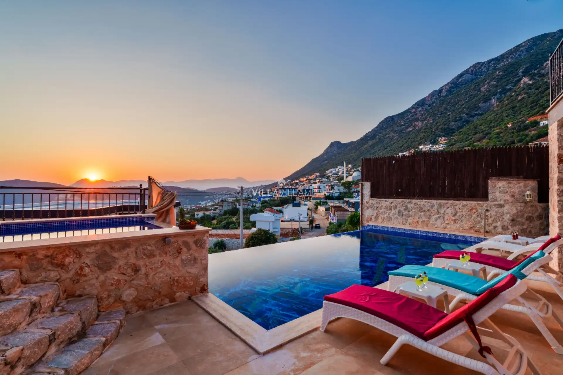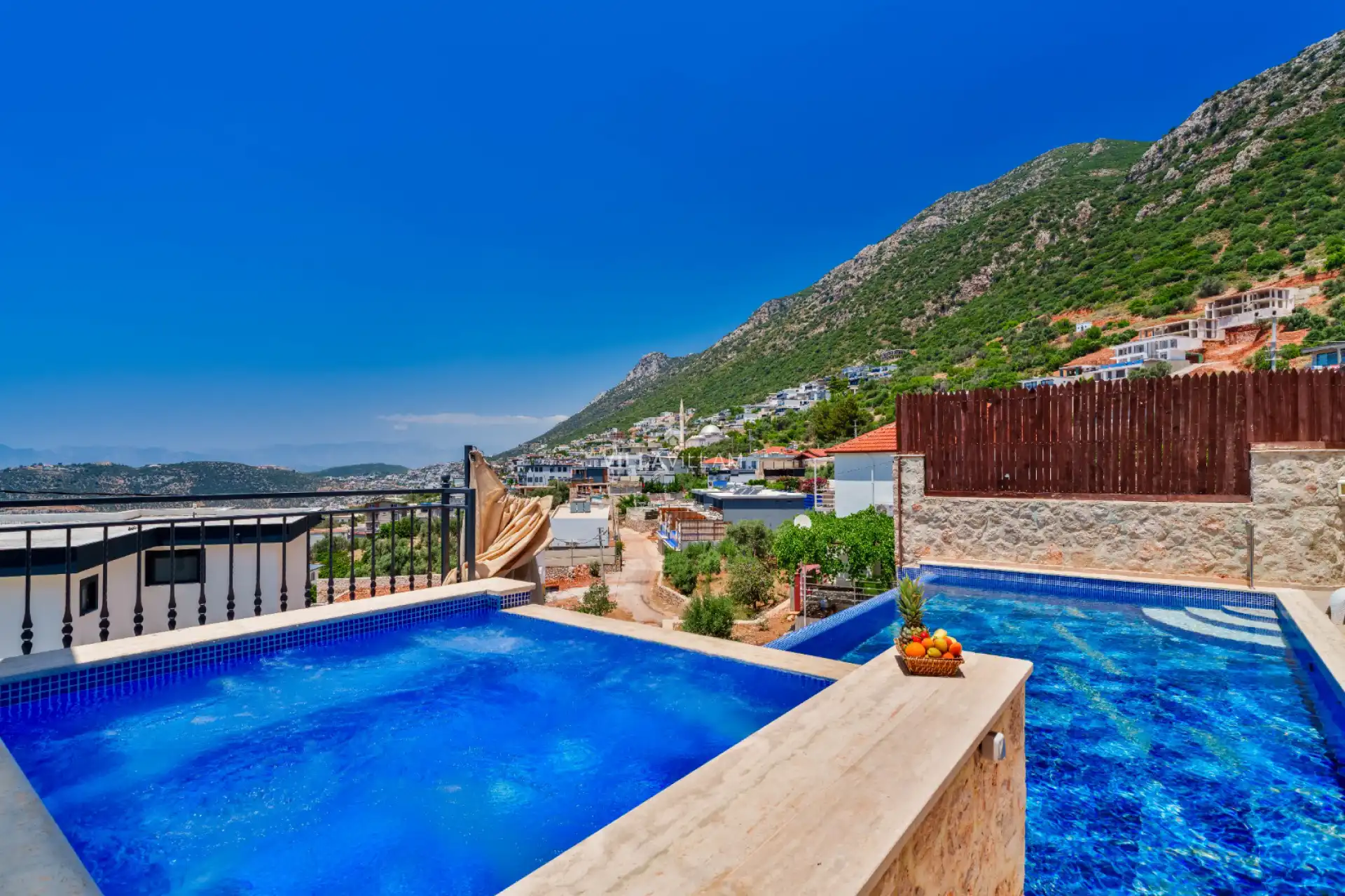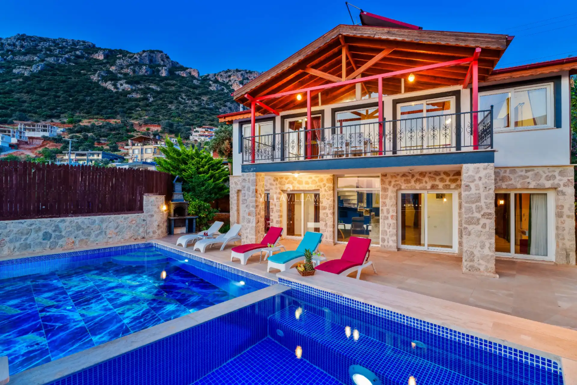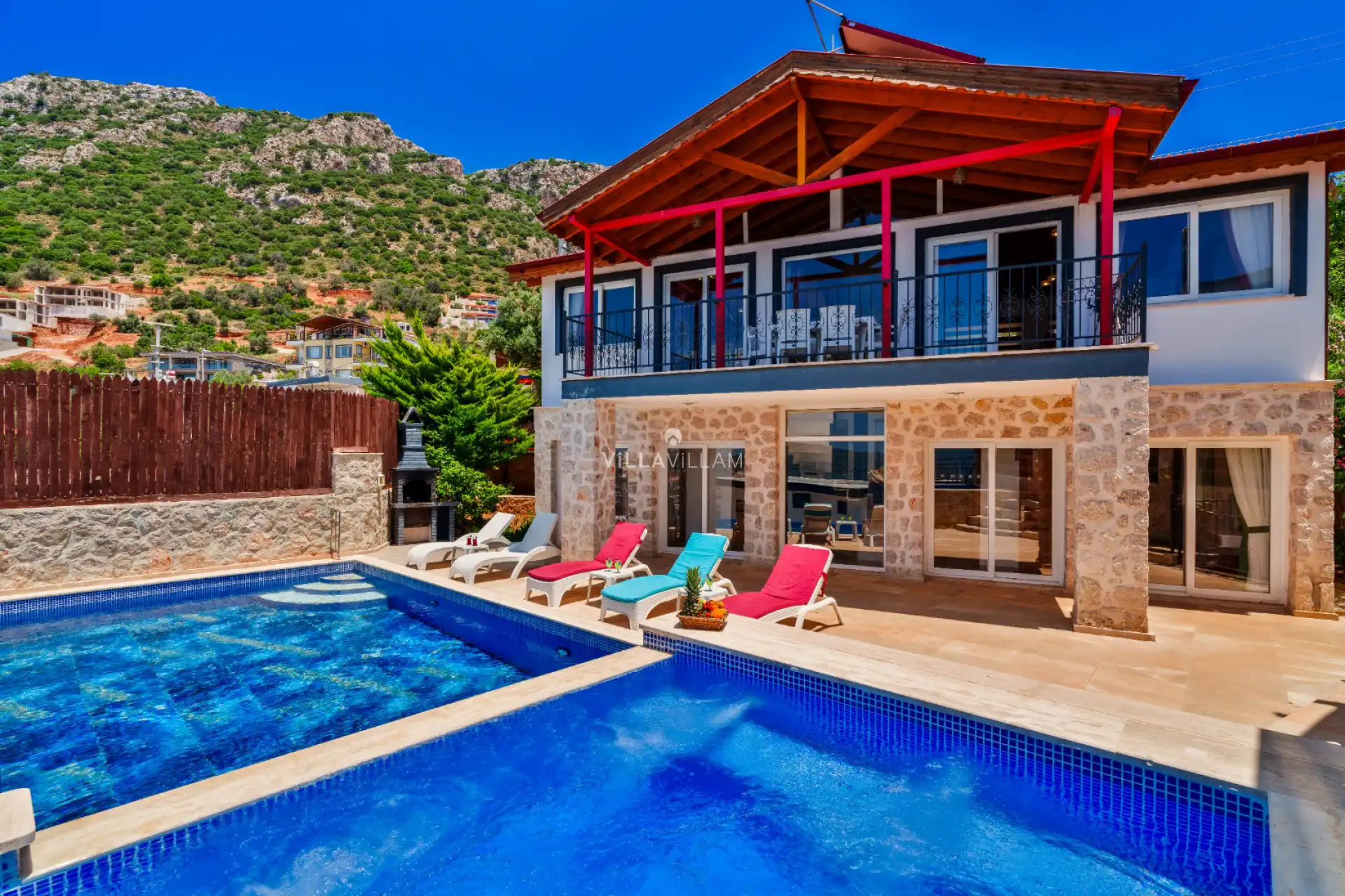 Kalkan Kördere'de bulunan villa 4 yatak odasıyla 6 kişilik konaklama kapasitesi sunmaktadır. Korunaklı havuz alanı, çocuk havuzu ve deniz manzarasınyla ön plana çıkan villa, kalabalık aile ve arkadaş grupları için uygun seçenekler arasındadır.