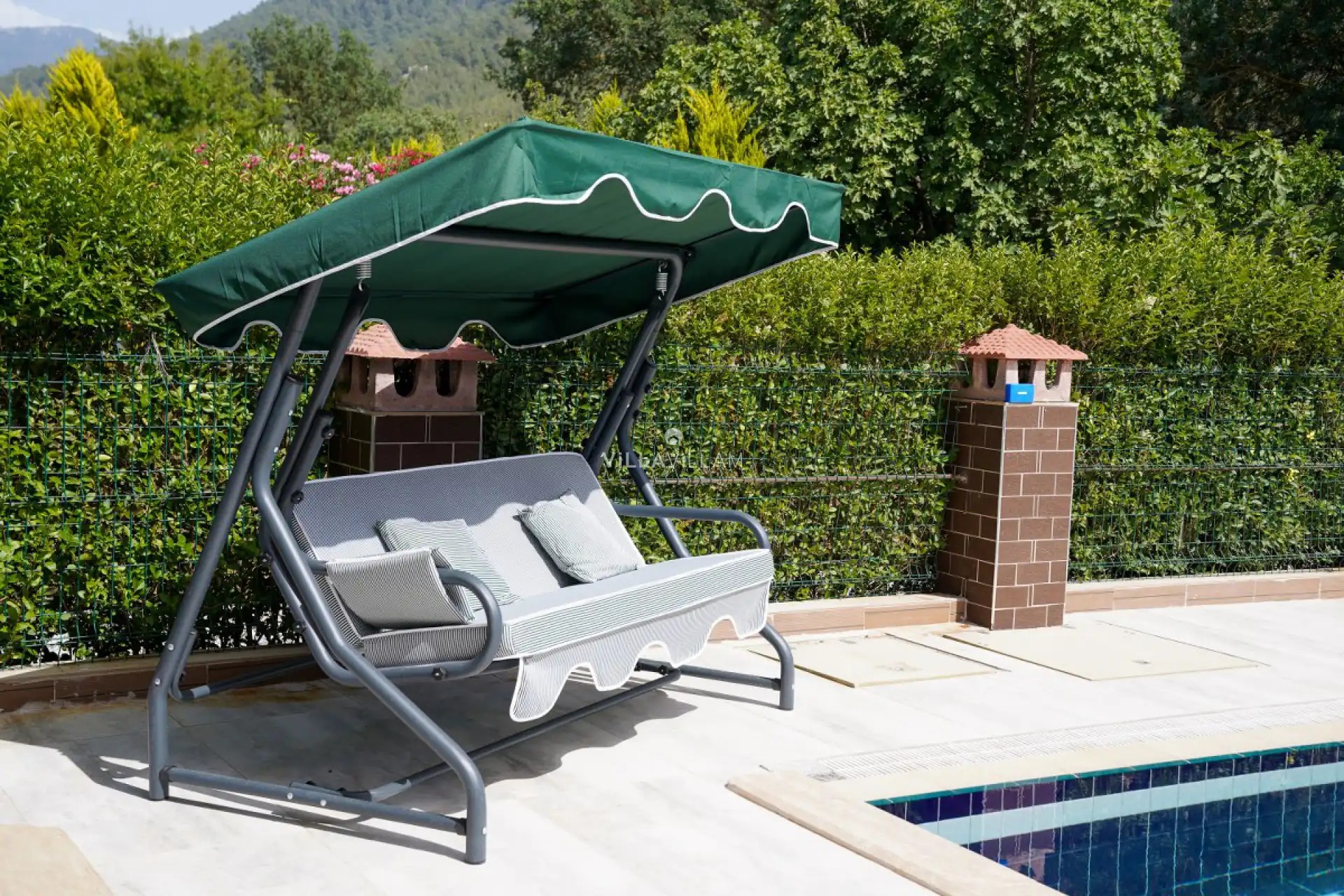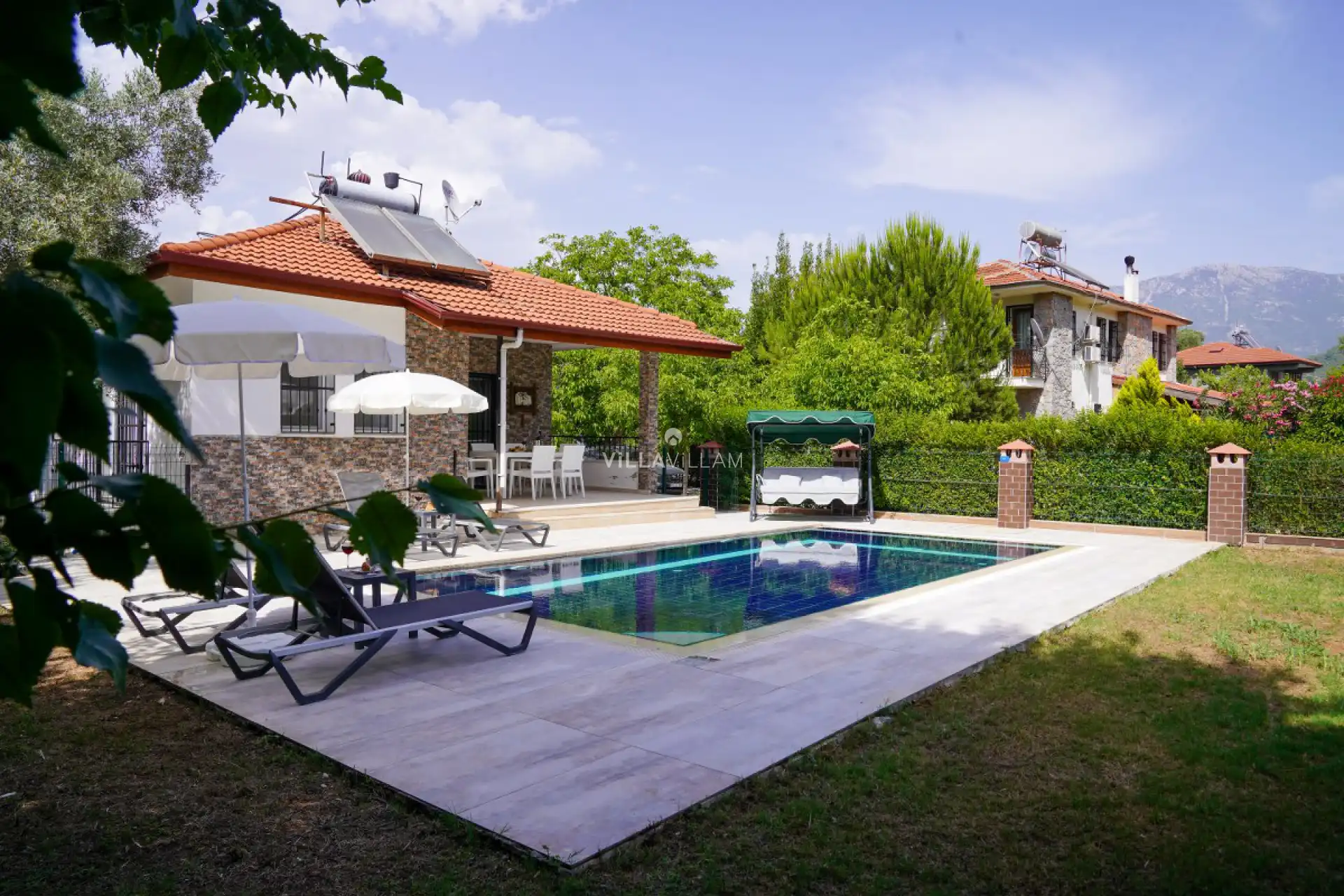 Kayaköy'ün eşsiz tarihi ve doğası içerisinde sizlere özel bahçeli villanın havuz terasında kapasiteye uygun şezlong takımı, salıncak, oturma grubu, barbekü alanı ve çocuk oyun ekipmanları bulunmaktadır. İhtiyaçlarınıza karşılık verecek konforlu oturma odası, tam donanımlı açık mutfağı bulunan villamızın; birinci yatak odasında çift kişilik yatak ve banyo; ikinci yatak odasında çift kişilik yatak ve banyo bulunmaktadır.