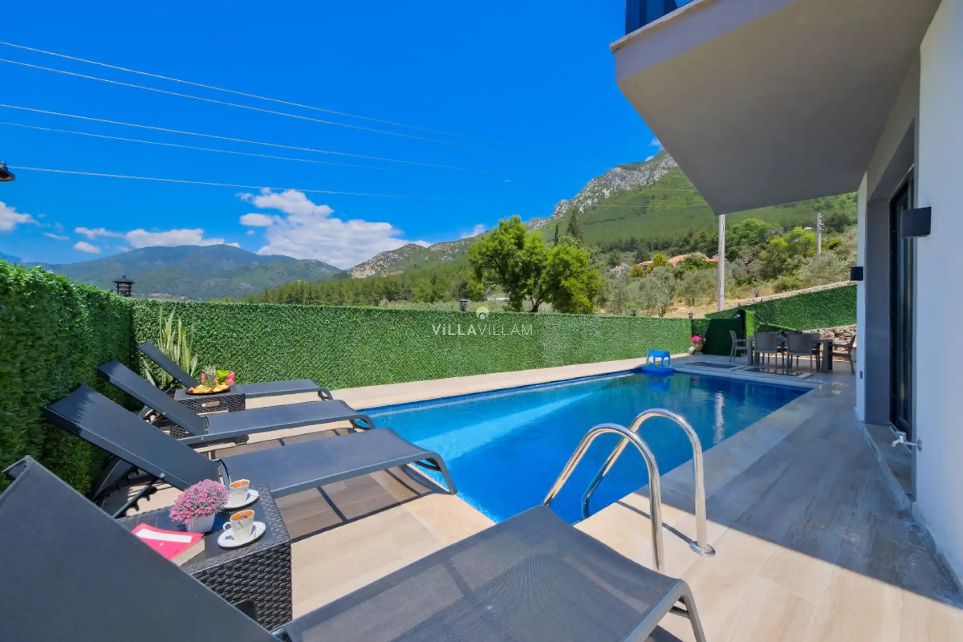 Fethiye'nin muhteşem doğasında tüm yorgunluğunuzdan arınacağınız, özenle döşenmiş bahçe ve havuz alanı ile en özel tatil anılarınıza ev sahipliği yapacak villamızda; birinci yatak odasında çift kişilik yatak ve banyo, ikinci yatak odasında çift kişilik yatak ve banyo, üçüncü ve dördüncü yatak odalarında ise iki adet tek kişilik yatak ve banyo bulunmaktadır. Villa, geniş iç mekânları ve özenle düşünülmüş detaylarıyla birlikte manzaraya karşı sayısız gün batımı ve sınırsız eğlenceli anlar vadetmektedir.