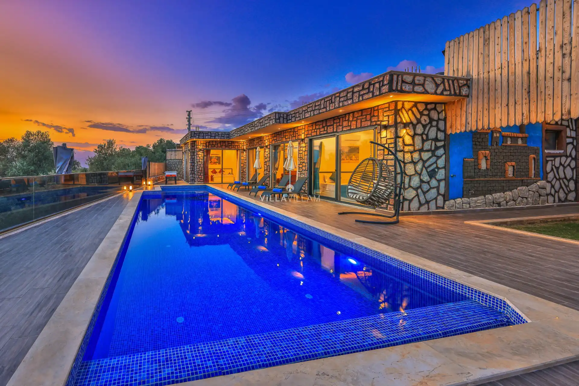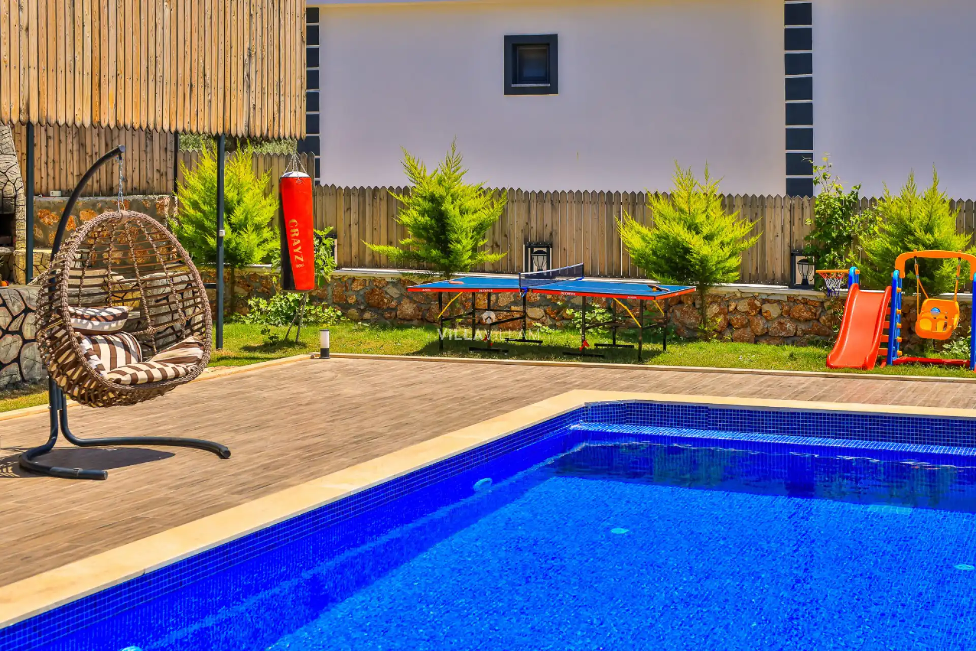 Korunaklı havuz alanına sahip olan villanın, havuz terasında kapasiteye uygun şezlong takımı, oturma grubu ve barbekü alanı bulunan villanın; yine havuz terasına açılan konforlu oturma odası ve tam donanımlı açık mutfağı, bir yatak odasında çift kişilik yatak, ebeveyn banyosu; diğer yatak odasında da iki tek kişilik yatak ve ebeveyn banyosu bulunmaktadır. Ayrıca yatak odasında jakuzi bulunan villa, dört mevsim tatil planlarınıza ev sahipliği yapmaya adaydır.