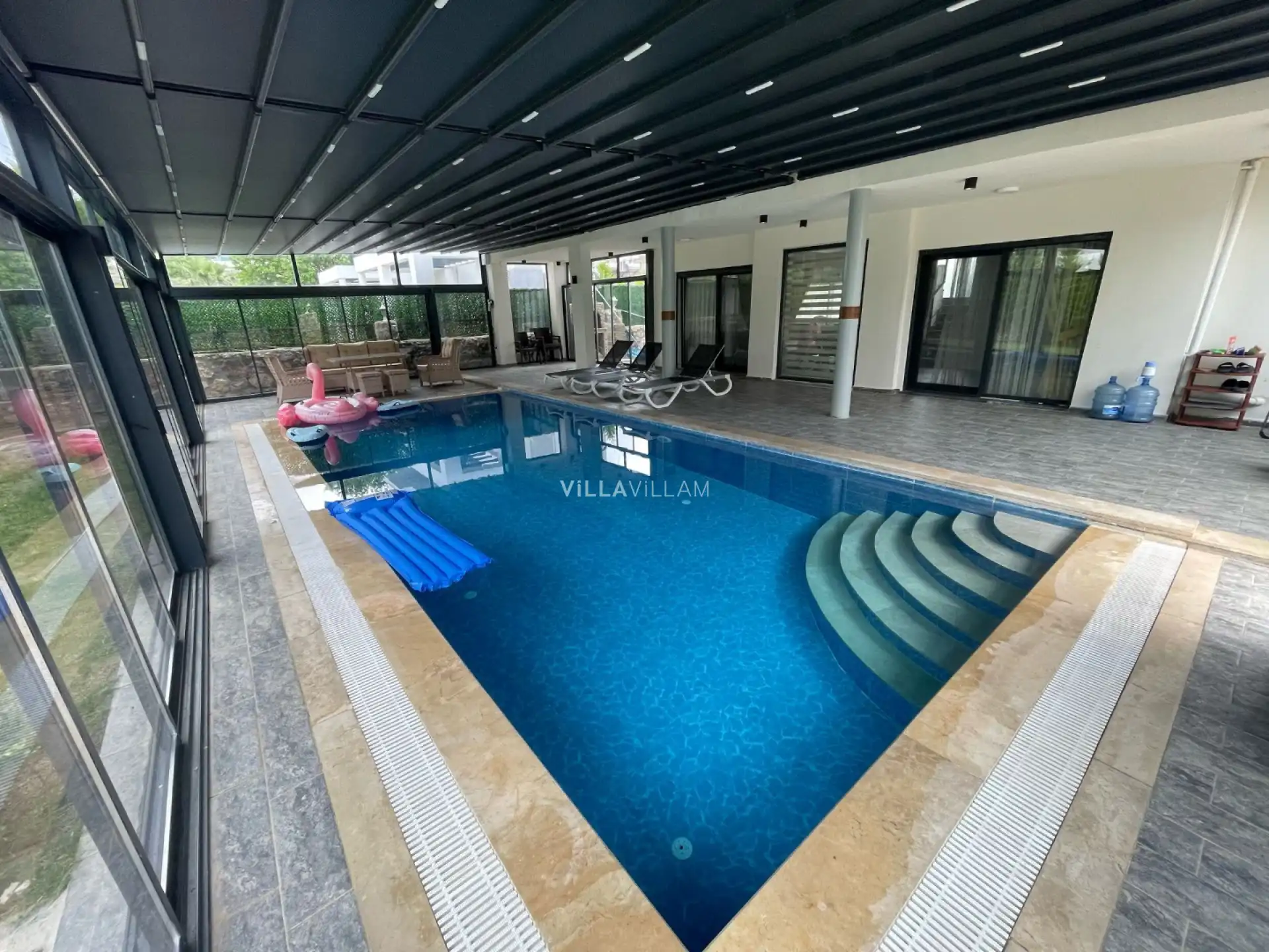 Villada oldukça geniş bahçe ve dış havuz alanı, dış havuz ısıtmalı olup etrafı kapanabilmektedir. Dış mekanda olduğu gibi iç mekanı da konforlu ve ferah bir yapıya sahip villamız kullanışlılığın ön planda tutulduğu modern bir anlayışla dizayn edilmiştir.