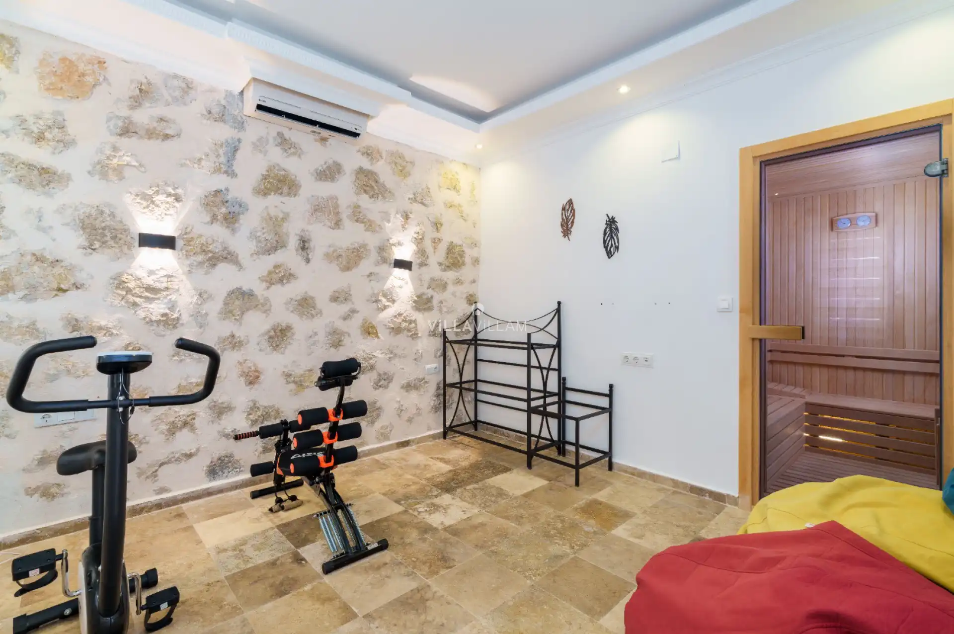 Doğa içinde, huzurlu bir konumu olan villanın havuz bahçe kısmında kapasiteye uygun şezlong takımı, oturma grubu, barbekü alanı; havuz terasına açılan oturma odası ve tam donanımlı açık mutfağı bulunmaktadır. Bir yatak odasında çift kişilik yatak, ebeveyn banyosu ve kapalı havuz; ikinci yatak odasında ise iki tek kişilik yatak ve ebeveyn banyosu bulunmaktadır. Konforunuz için her detayın düşünüldüğü villamızda, sauna ve ısıtmalı kapalı havuz ile misafirlerine yaz-kış tatil imkânı sunulmaktadır.