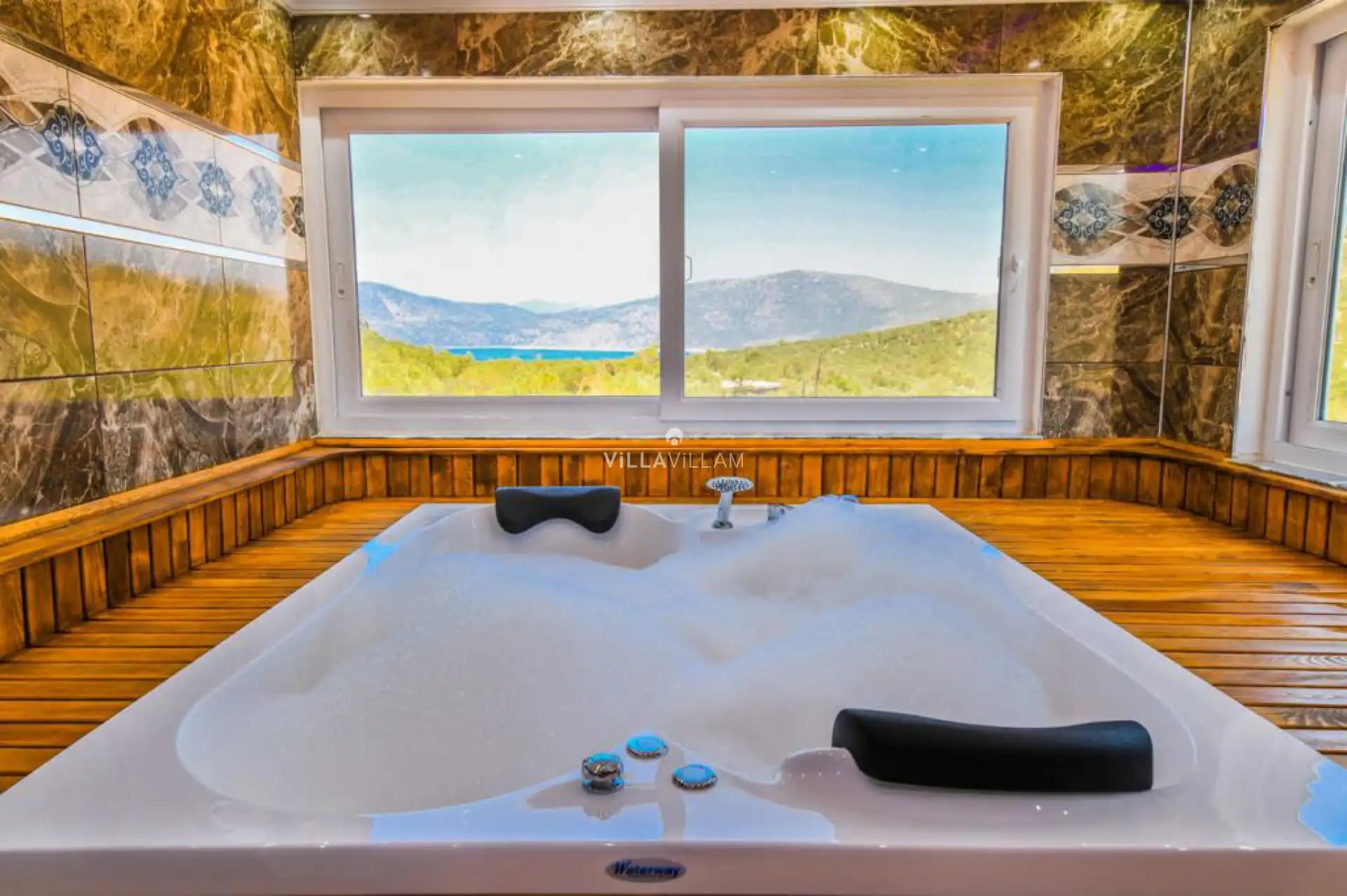 Gözlerden uzakta aileniz ve sevdiklerinizle doyasıya bir tatil geçirebileceğiniz villa merkeze de rahatlıkla ulaşabileceğiniz avantajlı bir konuma sahiptir. Çekirdek ailelere hitap ettiği gibi balayı çiftlerine de unutulmaz bir tatil fırsatı sunan villamızda doğa manzarası eşliğinde keyif yapabileceğiniz jakuzi alanı bulunmaktadır. birinci yatak odasında çift kişilik yatak ve ebeveyn banyosu; ikinci yatak odasında çift kişilik yatak ve ebeveyn banyosu;