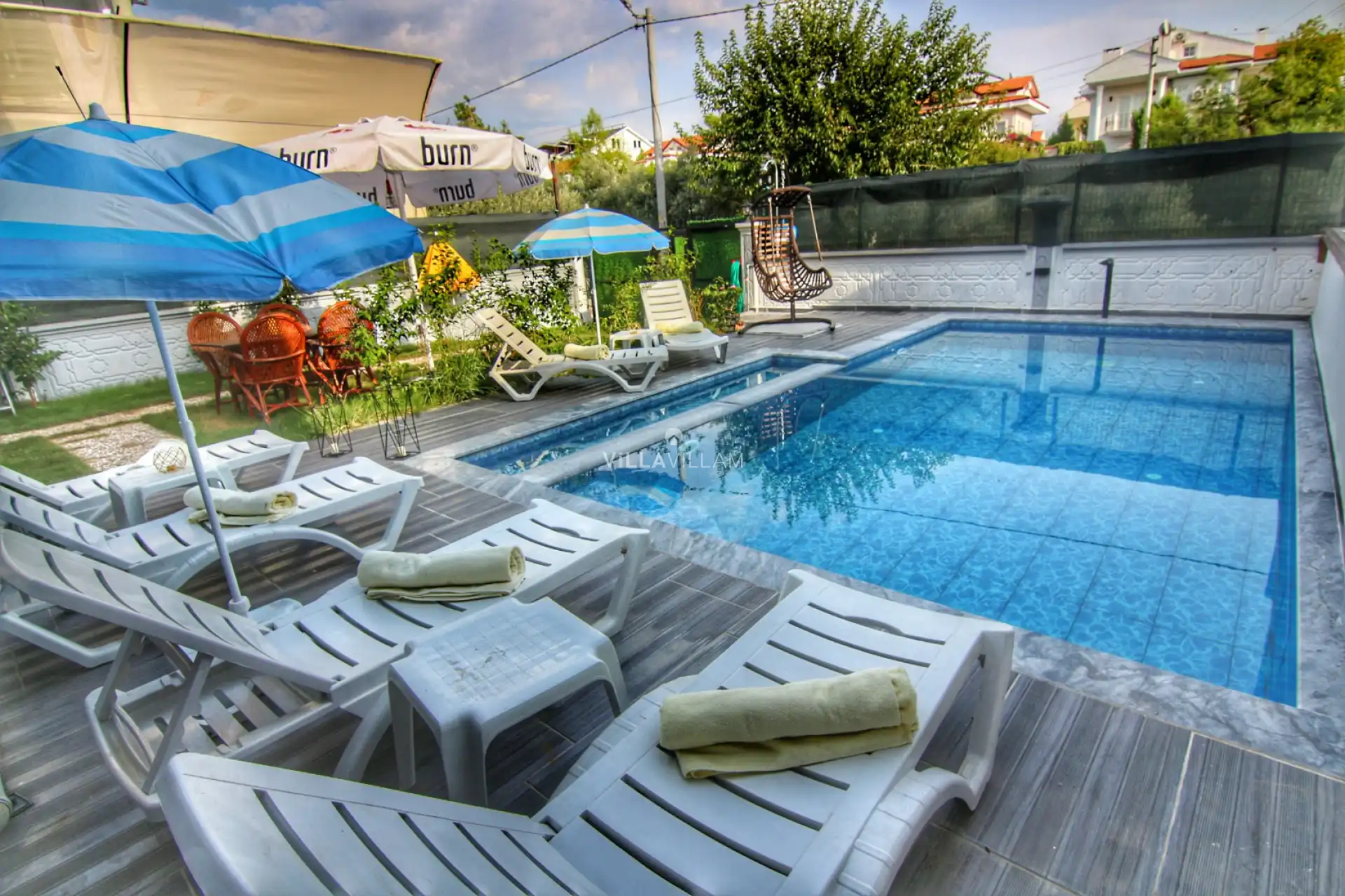 Villa, Fethiye'nin eşsiz doğasında güneşin ve havanın tadını çıkarabileceğiniz bir tatil vadetmektedir. Havuz terasında kapasiteye uygun şezlong takımı, oturma grubu ve barbekü bulunan villanın iç mekânında, ihtiyaçlarınıza karşılık verecek konforlu oturma odası ve tam donanımlı açık mutfağı; Birinci yatak odasında bir çift kişilik yatak, bir kişilik yatak ve banyo; diğer iki odasında iki tek kişilik ve banyo yatak bulunmaktadır.