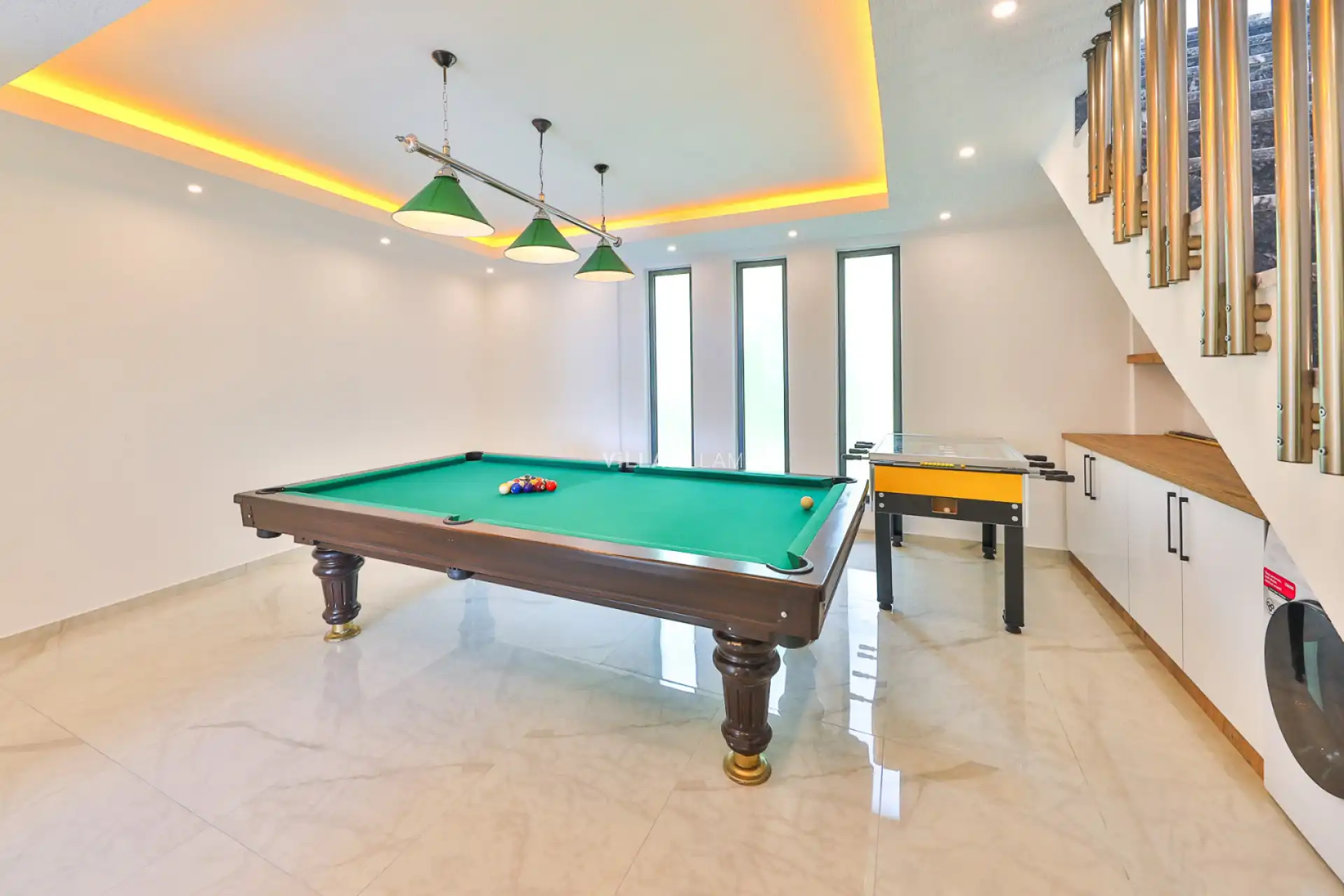 İç mekanı da oldukça modern ve konforlu mobilyalarla donatılan villanın yatak odalarından biri jakuzili olmak üzere her ikisi de ebeveyn banyoludur. Birinci ve ikinci yatak odasında çift kişilik yatak, jakuzi ve banyo; üçüncü yatak odasında iki adet tekli yatak bulunmaktadır. Hem çekirdek ailelerin hem de balayı çiftlerinin tatil bekletileri göz önüne alınarak hizmetinize sunulan villamız doğa ile iç içe huzurlu bir tatil fırsatı sunmaktadır.
