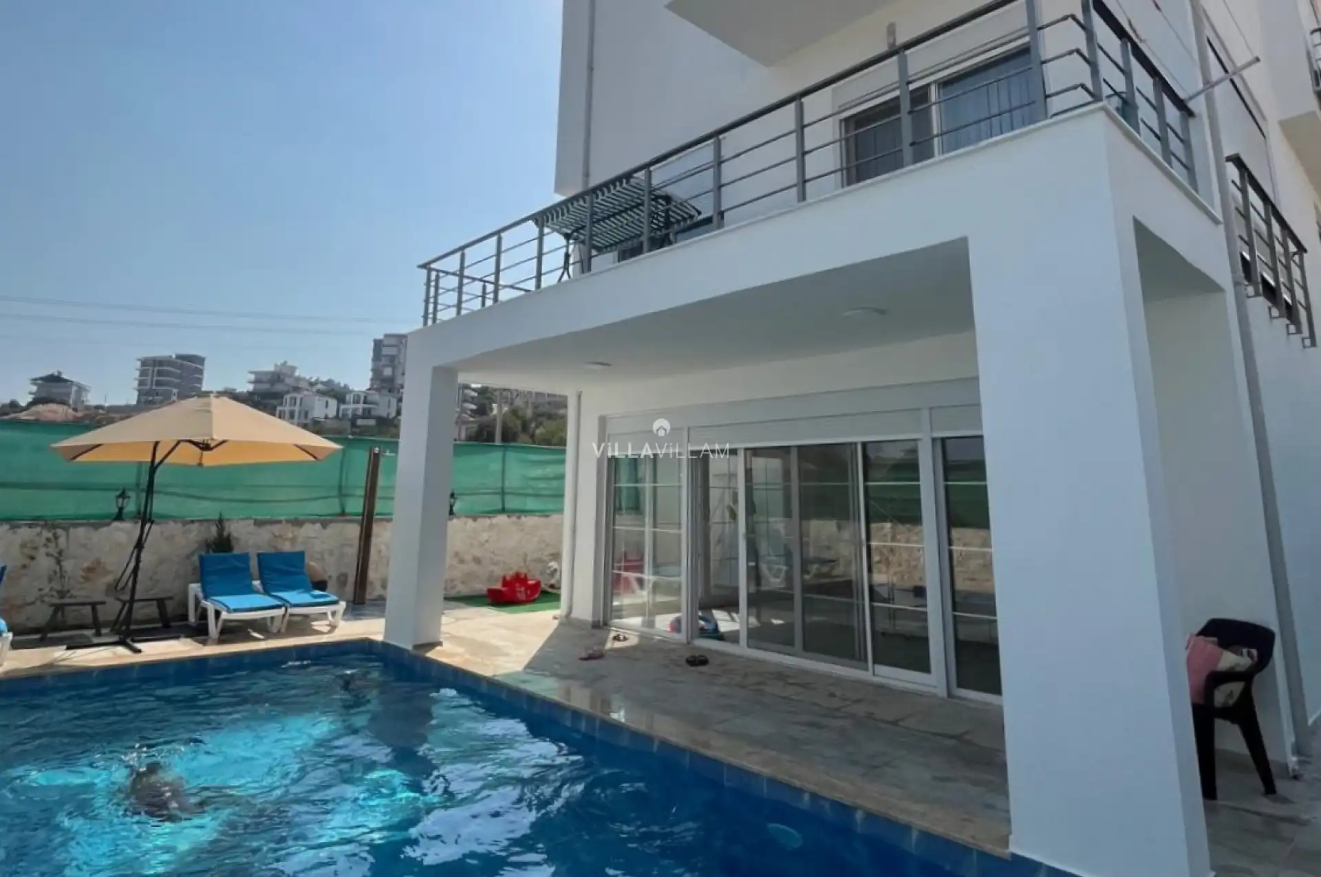 Manzaraya karşı güneşlenip yüzebileceğiniz havuz terasında kapasiteye uygun şezlong takımı ve oturma grubu bulunan villa, konforlu bir tatil imkanı sunmaktadır. Yine havuz terasına açılan oturma odası ve donanımlı açık mutfağı; birinci yatak odasında çift kişilik yatak, jakuzi ve ebeveyn banyosu; ikinci yatak odasında çift kişilik yatak; üçüncü yatak odasında ise iki tek kişilik yatak; dördüncü yatak odasında iki tek kişilik yatak ve 3 adet ortak banyo bulunmaktadır.