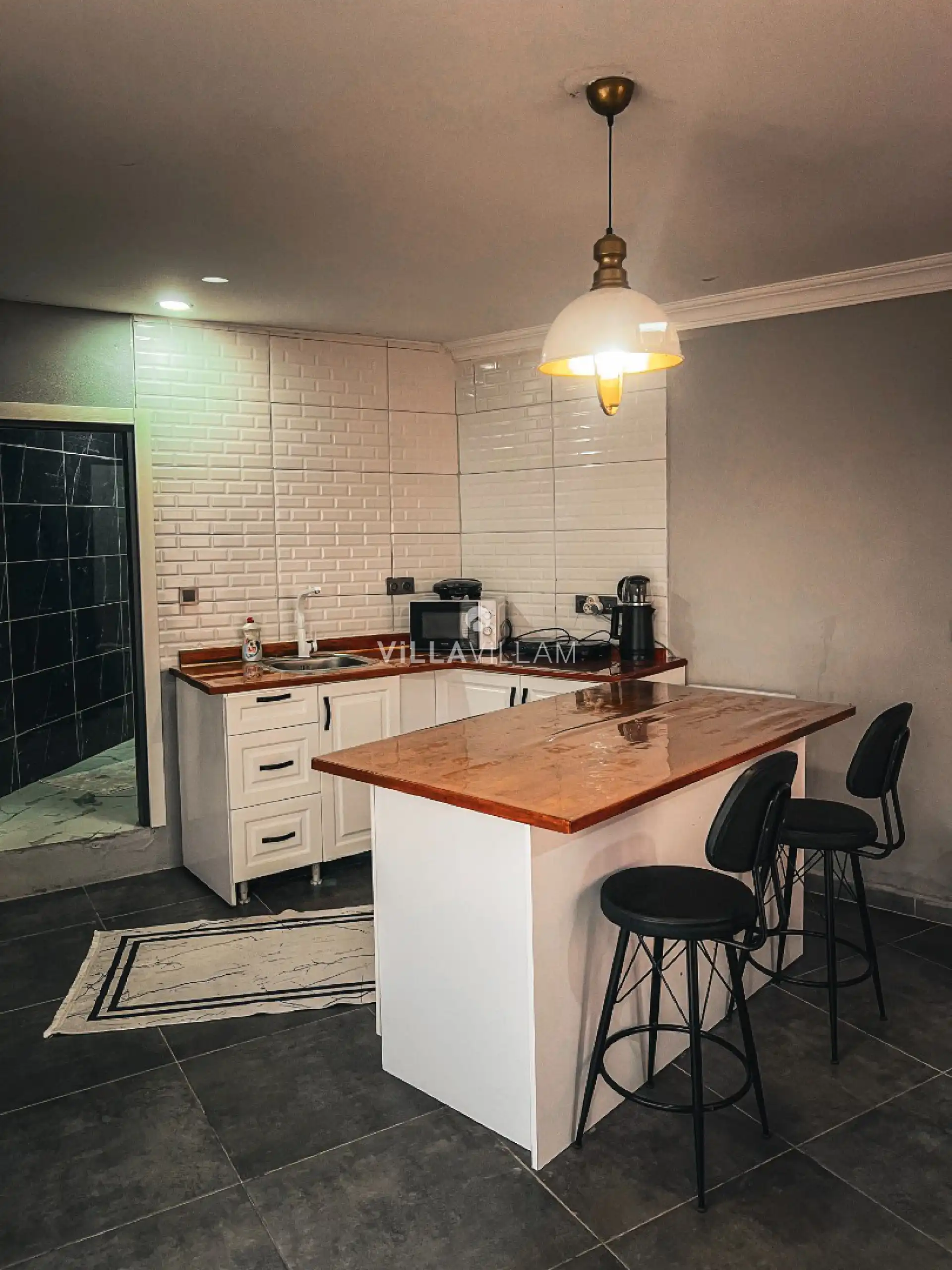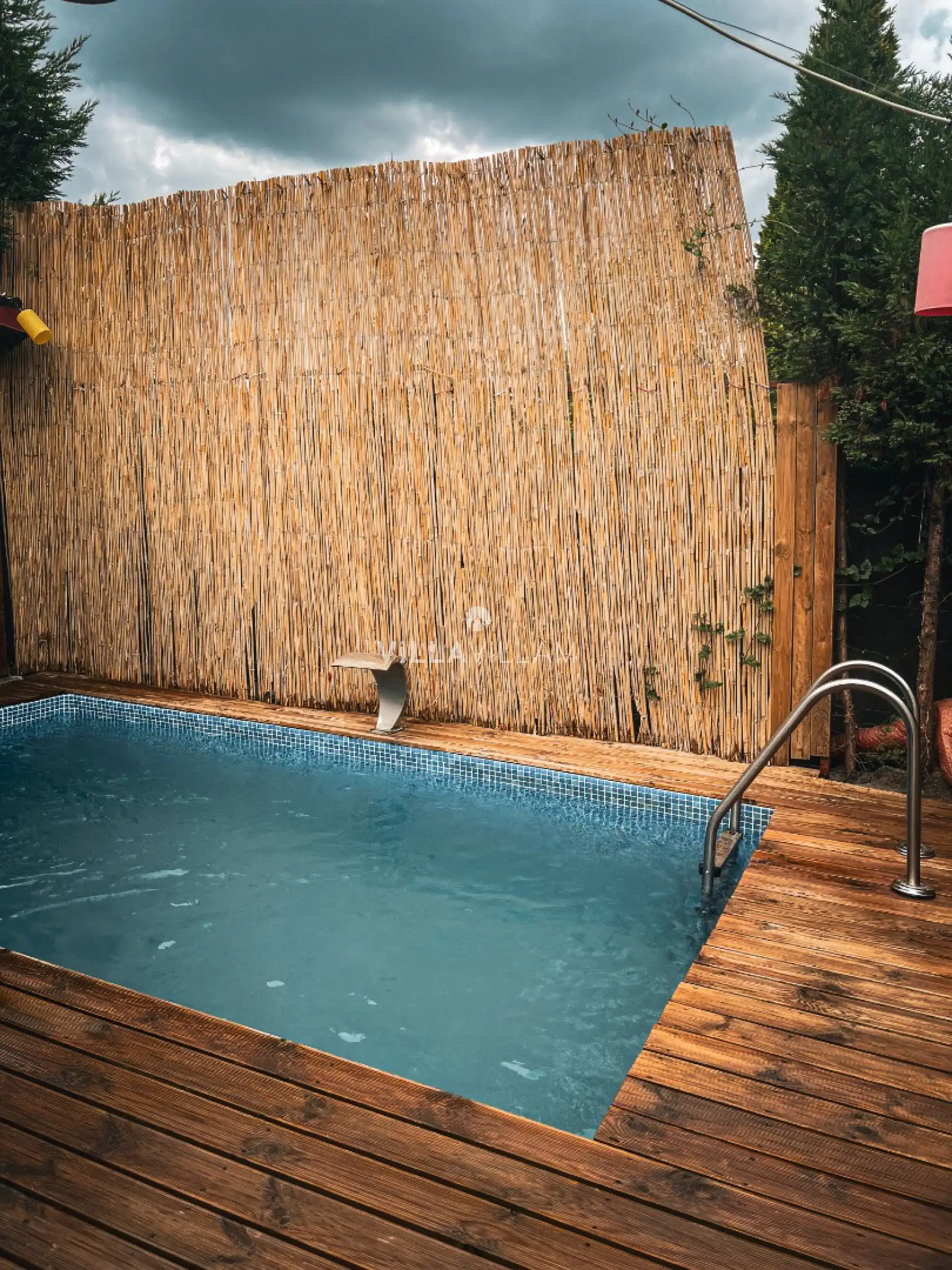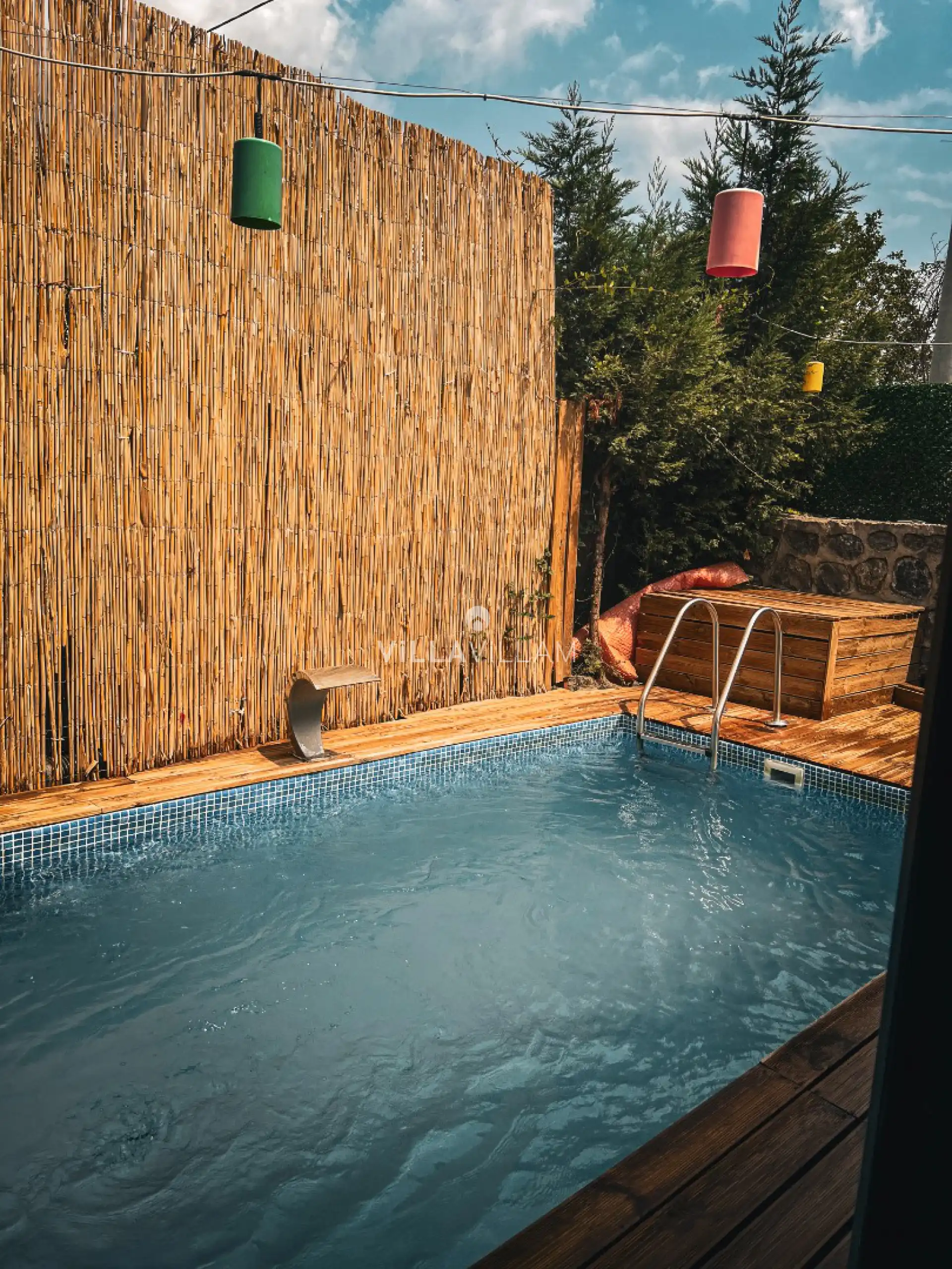 Şehrin gürültüsünden ve stresinden uzaklaşacağınız, tüm yılın yorgunluğunu atabileceğiniz, doğa içinde sakin bir konumu misafirlerine rüya gibi bir tatil vadeden villanın havuz terasında, oturma grubu ve barbekü alanı yer almaktadır. Tüm ihtiyaçlarınıza karşılık verecek konforlu oturma odası ve minimal mutfağı; birinci yatak odasında çift kişilik yatak, ebeveyn banyosu bulunmaktadır.