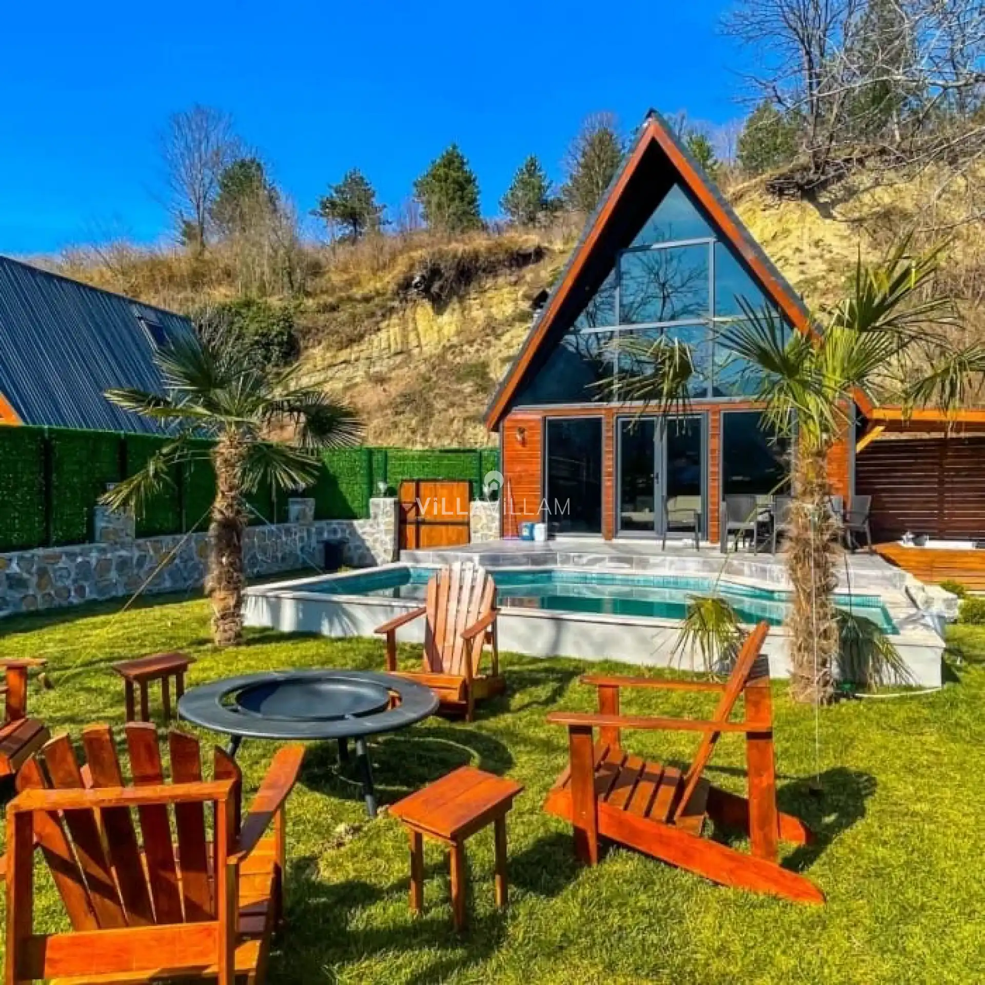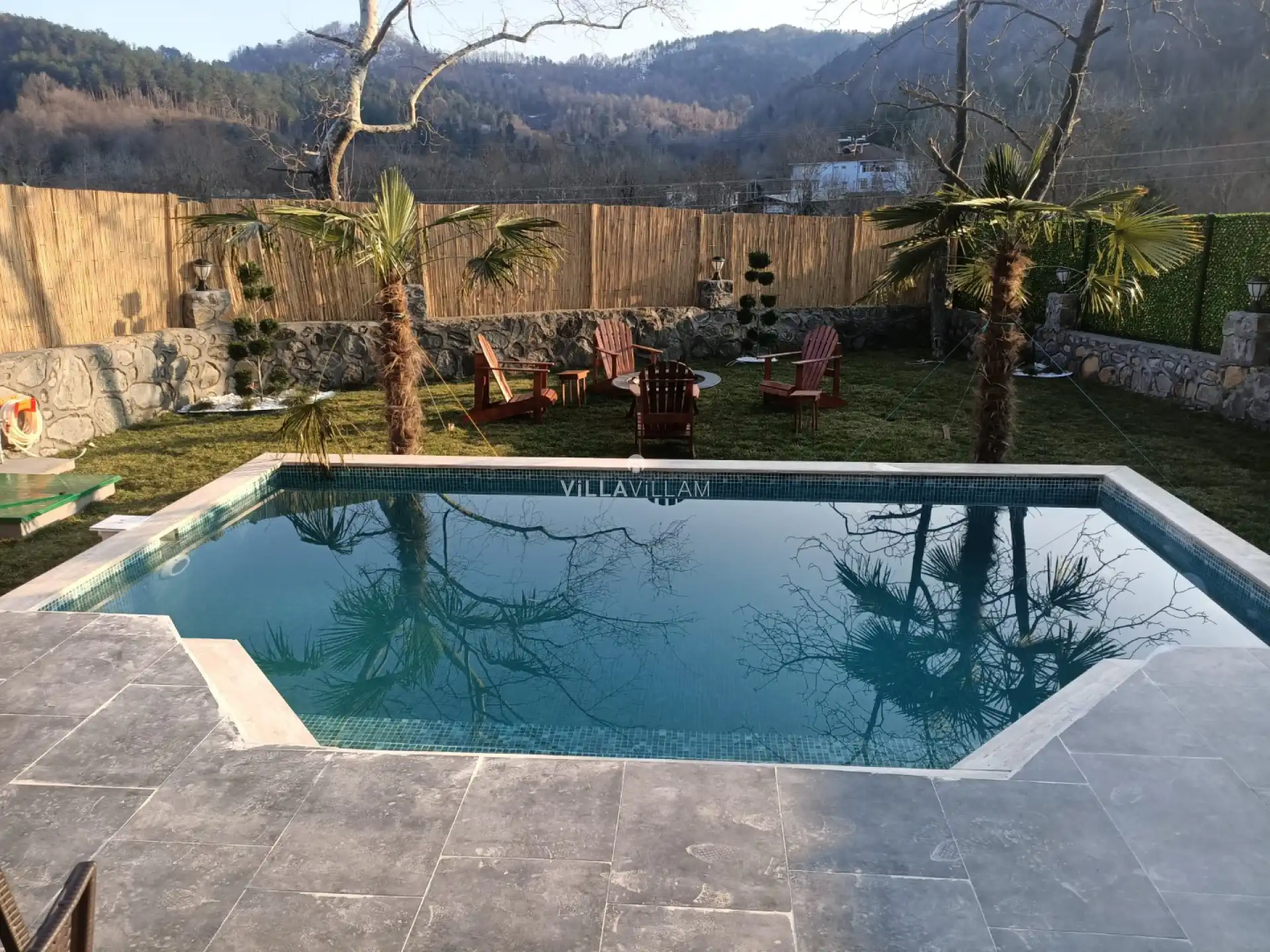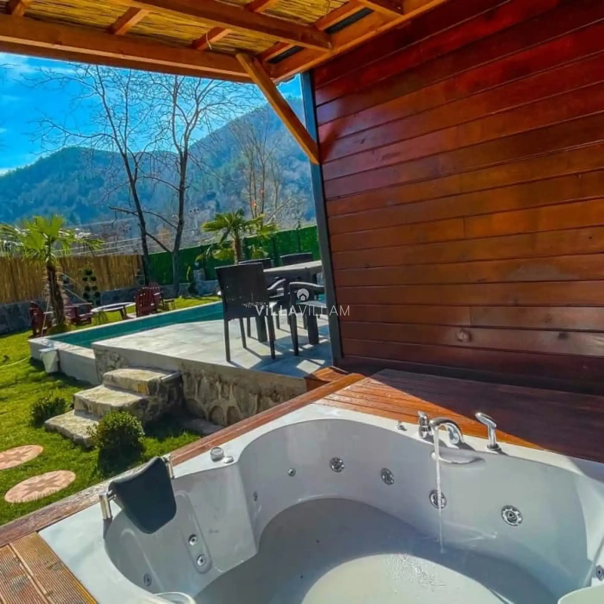 Şehrin gürültüsünden ve stresinden uzaklaşacağınız, tüm yılın yorgunluğunu atabileceğiniz, doğa içinde sakin bir konumu misafirlerine rüya gibi bir tatil vadeden villanın havuz terasında, kapasiteye uygun şezlong takımı, oturma grubu ve barbekü alanı yer almaktadır. Tüm ihtiyaçlarınıza karşılık verecek konforlu oturma odası ve açık mutfağı; birinci yatak odasında çift kişilik yatak, ikinci yatak odasında çift kişilik yatak bulunmaktadır.
