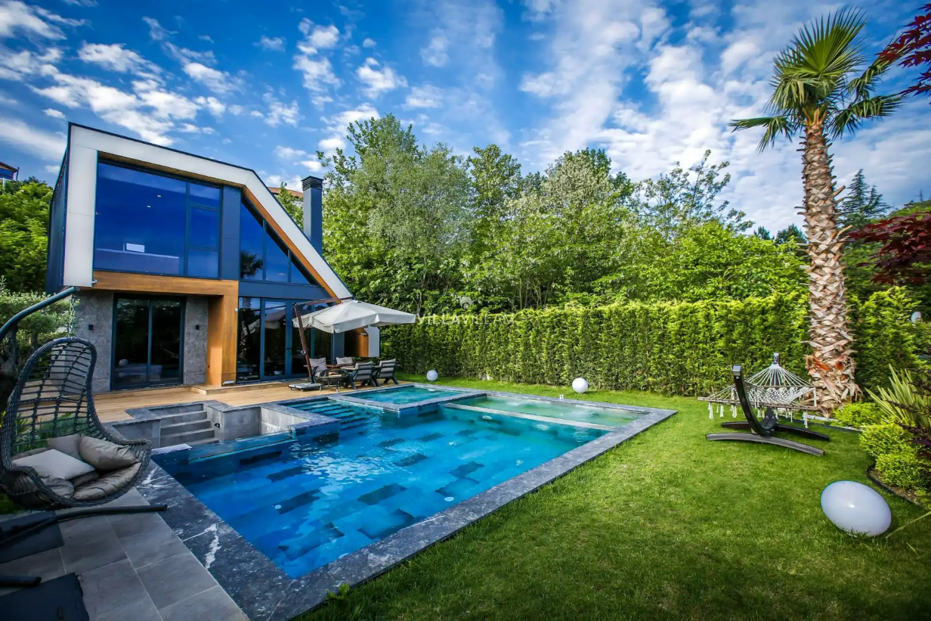 Sapanca Kuruçeşme bölgesinde bulunan villa, 2 yatak odasıyla 4 kişilik konaklama kapasitesi sunmaktadır. Dış ısıtmalı havuzu ve şöminesi ile ön plana çıkan villa çekirdek aile ve balayı çiftleri için uygundur.
