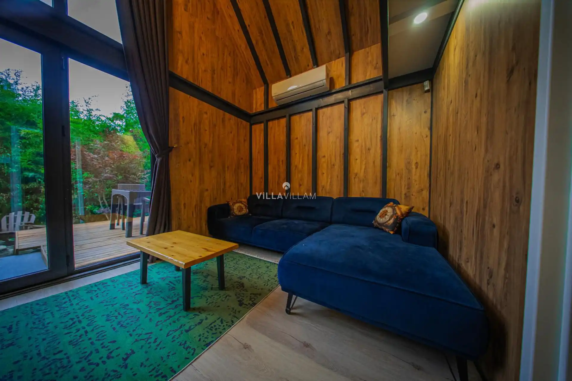 Sapanca Yanık bölgesinde bulunan villa, 2 yatak odasıyla 4 kişilik konaklama kapasitesi sunmaktadır. Dış ısıtmalı havuzu ile ön plana çıkan bungalov çekirdek aile ve balayı çiftleri için uygundur.