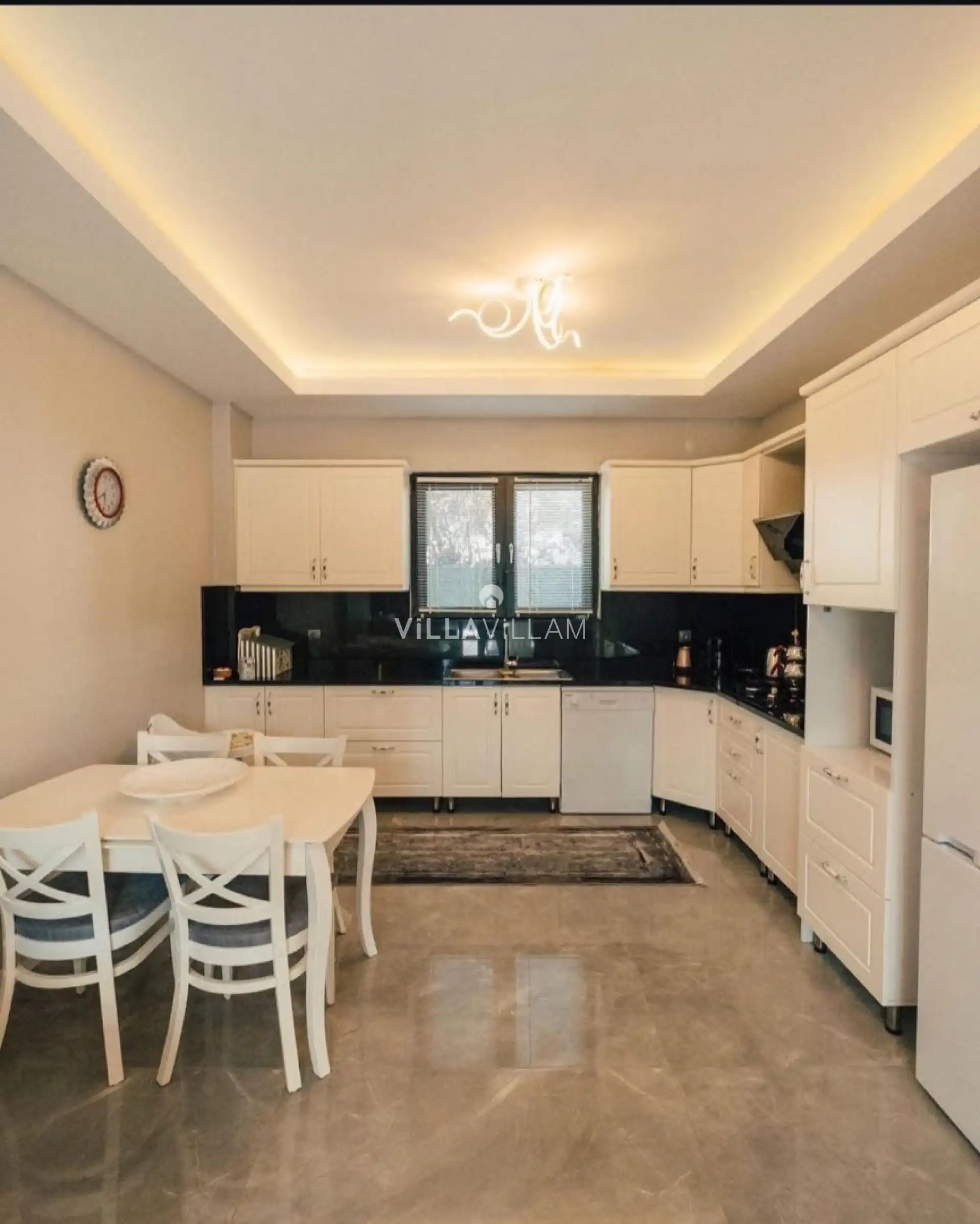 Sevdiklerinizle birlikte konforunuzdan ödün vermeden tatilinizi doyasıya geçirmeniz adına, kısmi korunaklı havuzu, dış mekân kadar ferah iç mekanı, özenle seçilmiş mobilyaları, havuz başında konumlandırılan oldukça rahat salıncağı, şezlong takımları ve sevdiklerinizle eğlenceli zaman geçirebilmeniz için düşünülmüş barbekü alanı ve kış bahçesi yer alırken; tüm yatak odalarında çift kişilik yatak ve üç adet ortak kullanım banyosu bulunmaktadır.