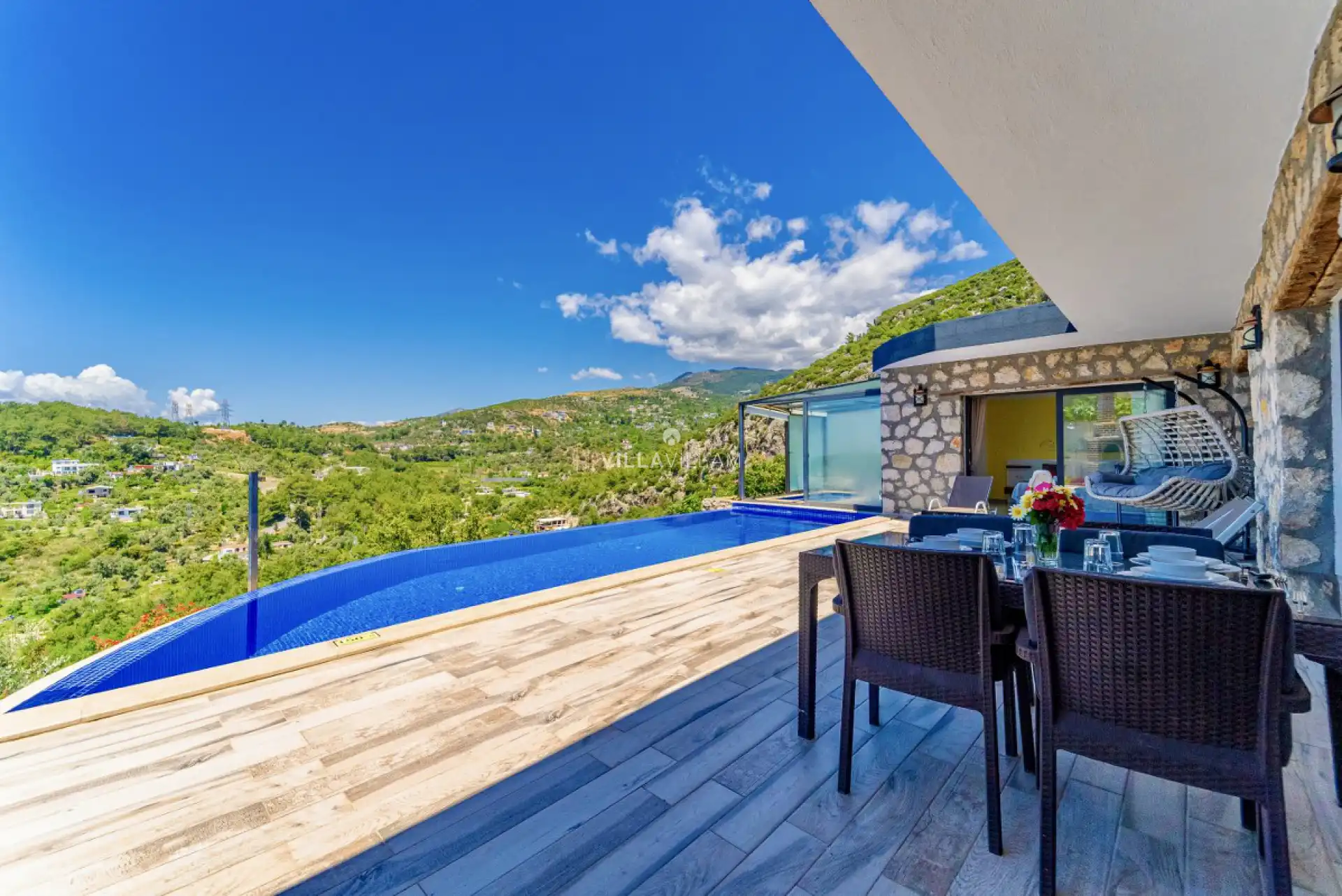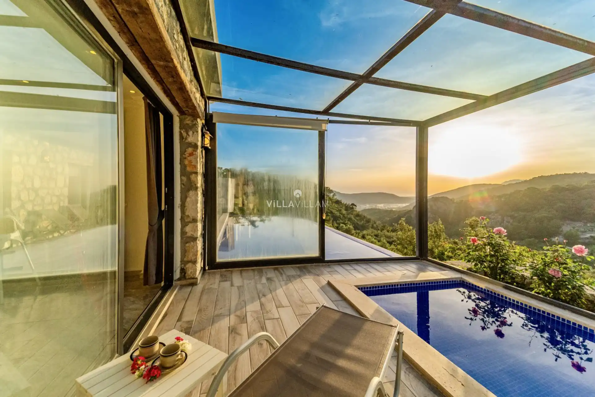 Özellikle balayı çiftlerinin rüya gibi bir tatil geçirebileceği villamız kapalı havuzu ve jakuzisi ile yılın her mevsimi tatil arayışınıza cevap verebilecek özellik taşımaktadır. Bölgenin coğrafi yapısına uygun taş mimarisiyle dikkat çeken villa, Bir yatak odasında çift kişilik yatak, jakuzi ve ebeveyn banyosu, diğer yatak odasında da iki tek kişilik yatak, banyo mevcut olan villa, ihtiyaçlarınıza tam karşılık verecek donanıma sahiptir.