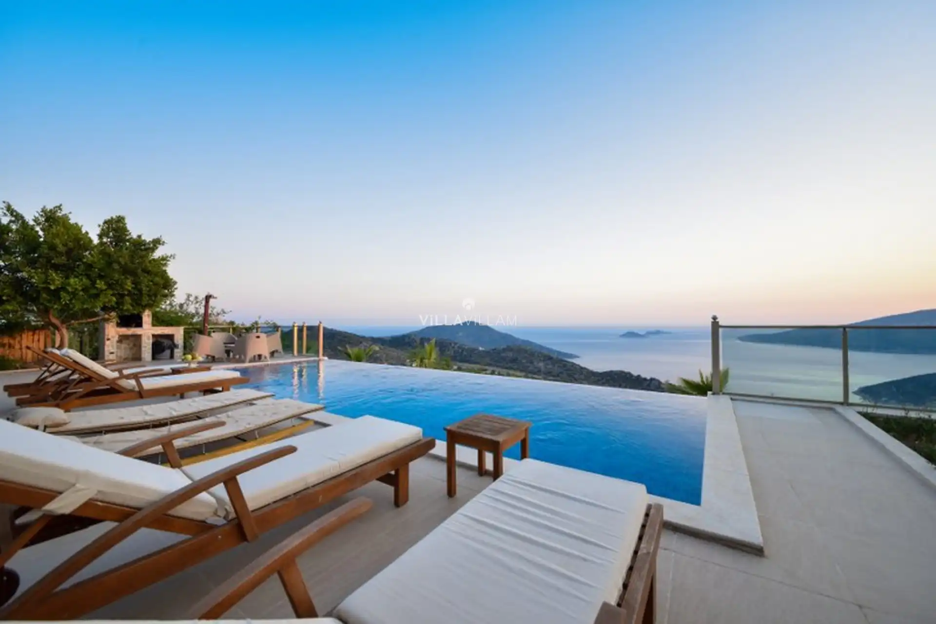 Denize ve merkeze kısa ve rahat sürüş mesafesinde olan konumuyla, Kalkan Koyu ve adalar manzarasına doyacağınız, uçsuz bucaksız deniz manzarasında gün batımının tadına varacağınız bu villa, konforlu bir tatil için siz değerli misafirlerini ağırlamayı beklemektedir.