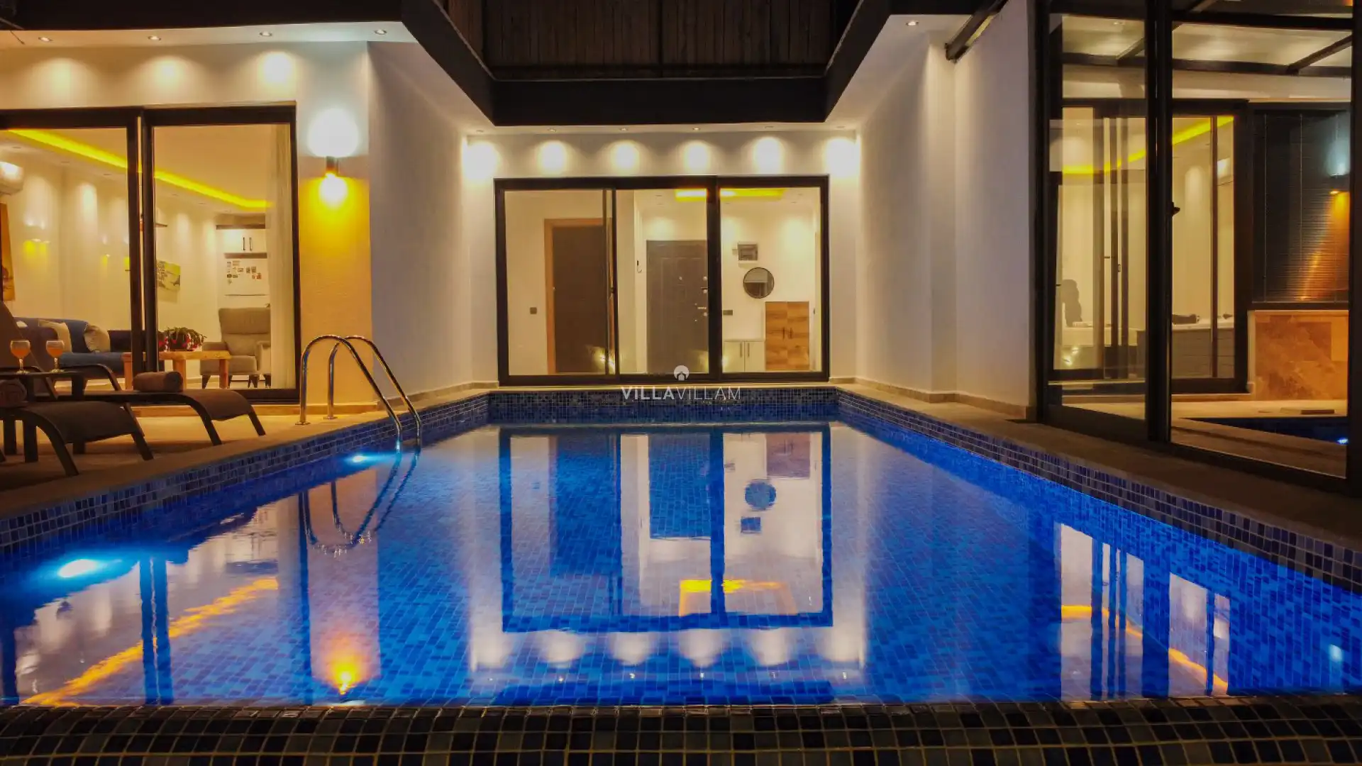 Not: Kapalı havuz ısıtma sistemi günlük 1000 TL ekstra ücret karşılığında hizmet vermektedir. Havuz ısıtma talebi giriş tarihinden 2 gün önce bildirilmelidir ve konaklama süresince aktif edilebilmektedir.