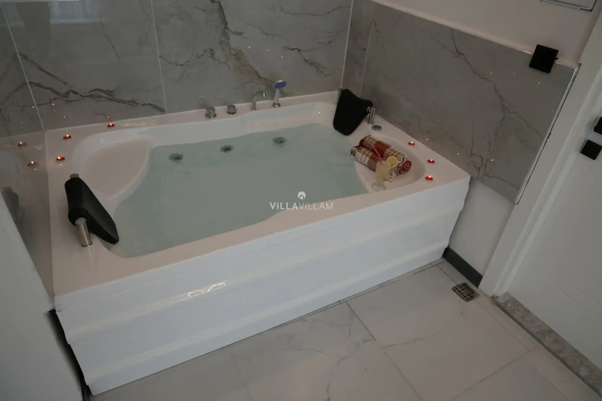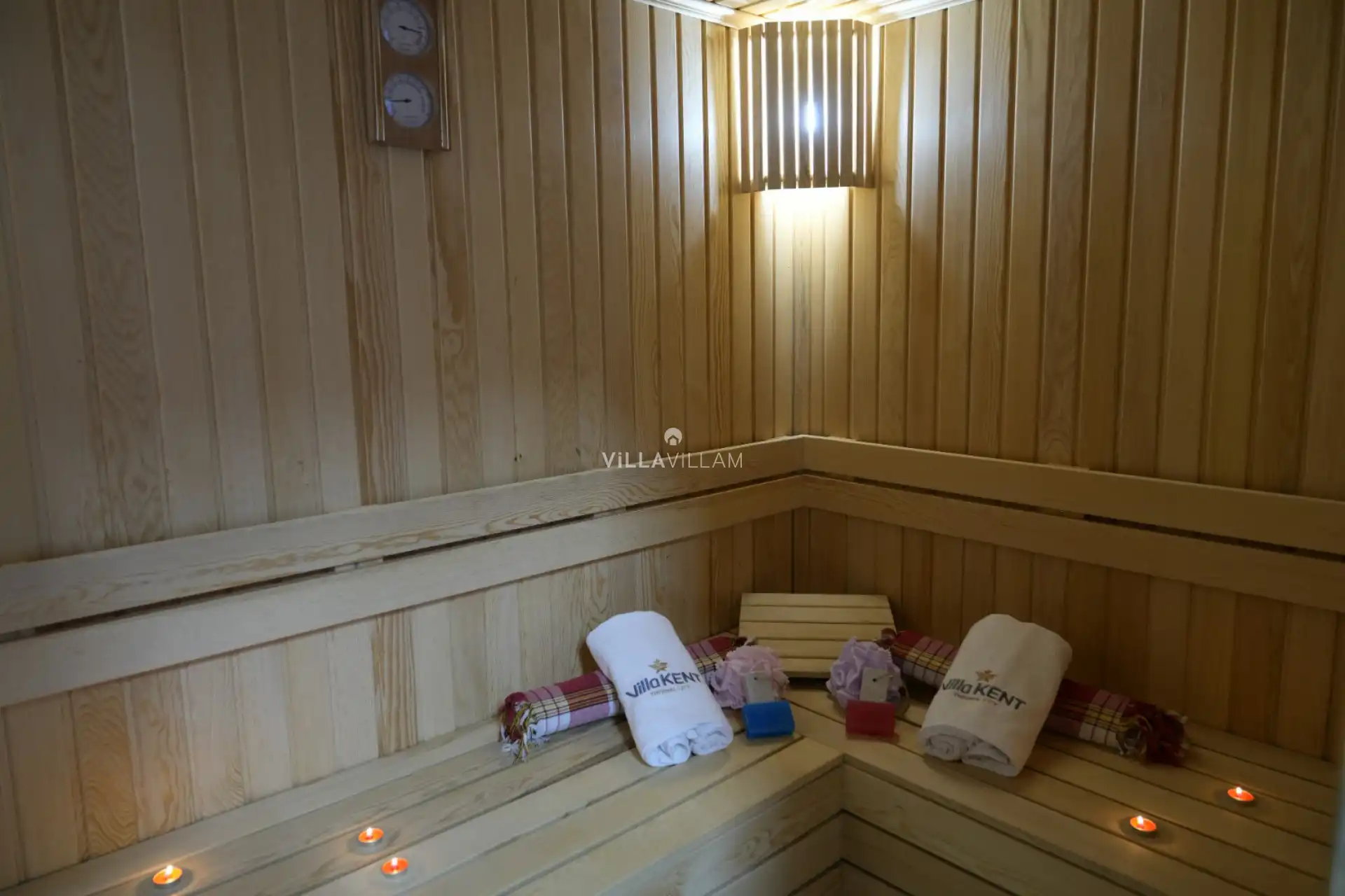 Korunaklı yapıya sahip bahçesinde oturma grubu yer almakta; iç mekânında ise konforlu bir oturma odası ve tam donanımlı bir mutfak bulunmaktadır. Birinci yatak odasında çift kişilik yatak ve ebeveyn banyosu; ikinci yatak odasında iki tek kişilik yatak ve ebeveyn banyosu; üçüncü yatak odasında ise iki tek kişilik yatak yer alırken ayrıca iki adet ortak banyo/wc bulunmaktadır. Kış aylarında konforlu bir konaklama sağlanabilmesi adına villada yerden ısıtma sistemi kullanılmaktadır. Villanın bulunduğu site alanında çocuk oyun alanı, restoran, market, keyifli zaman geçirebileceğiniz kamelyalar ve kamelya önünde süs havuzu yer almaktadır.