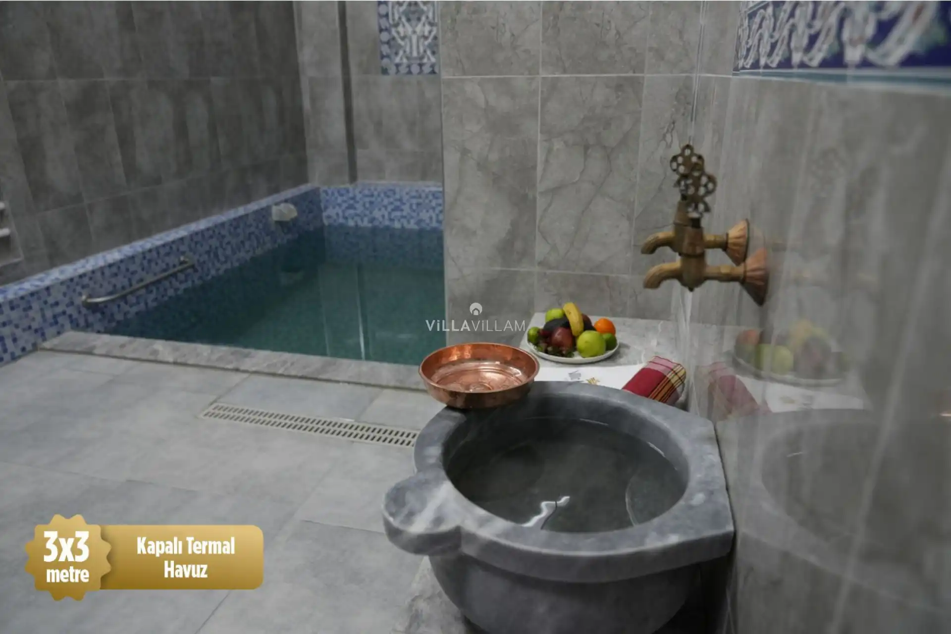 Not: Villamızda kapalı havuz bölümünde bulunan Gazlıgöl termal suyunun kuyu çıkış sıcaklığı 64-85°C’dir. Kapalı termal havuzun sıcaklığı 35-45°C'dir.