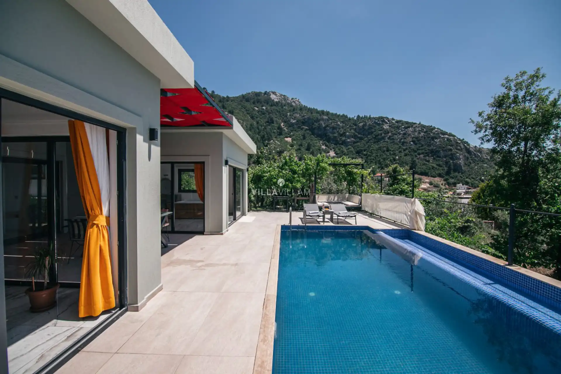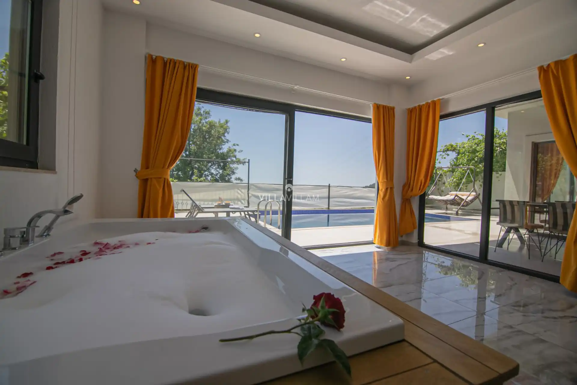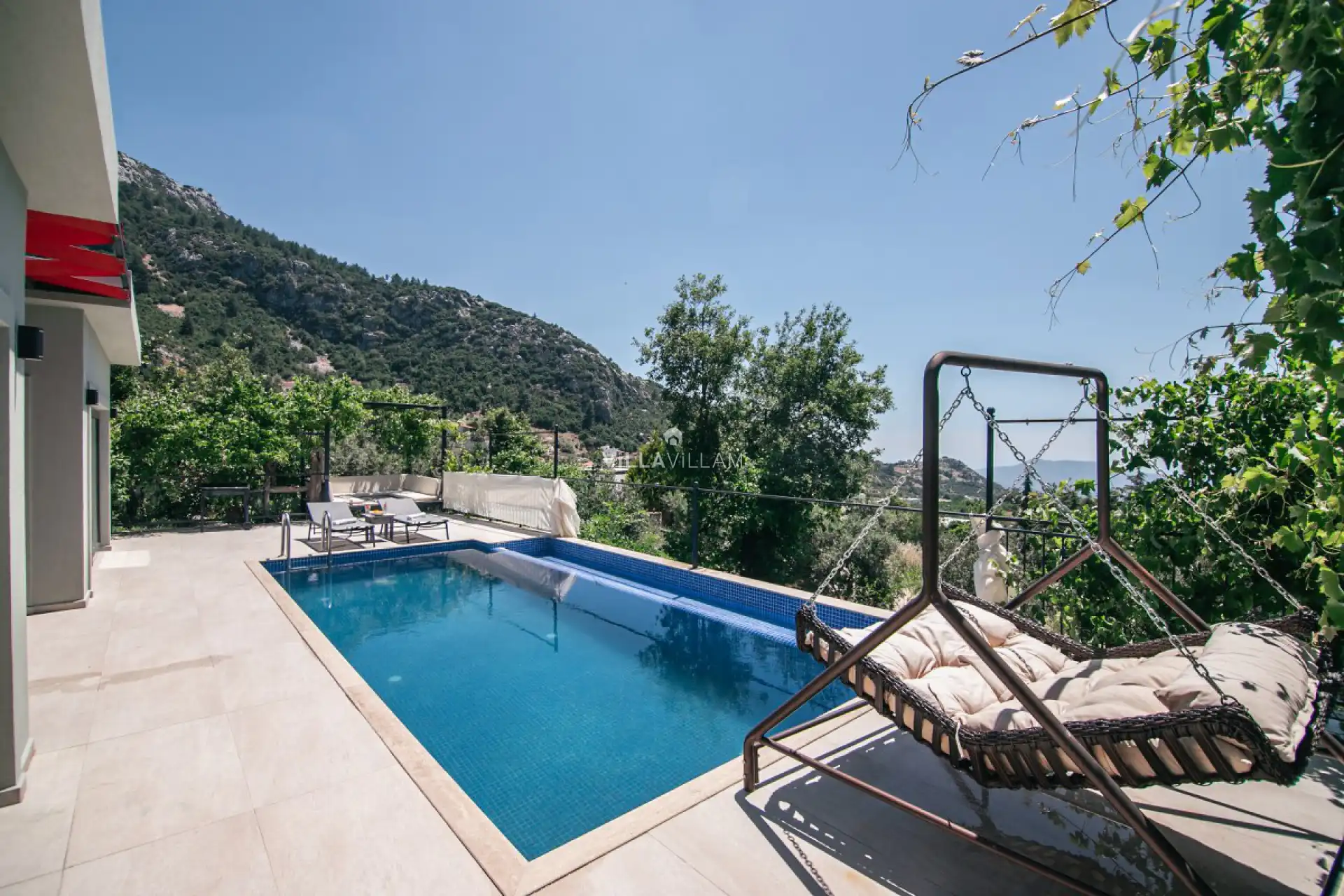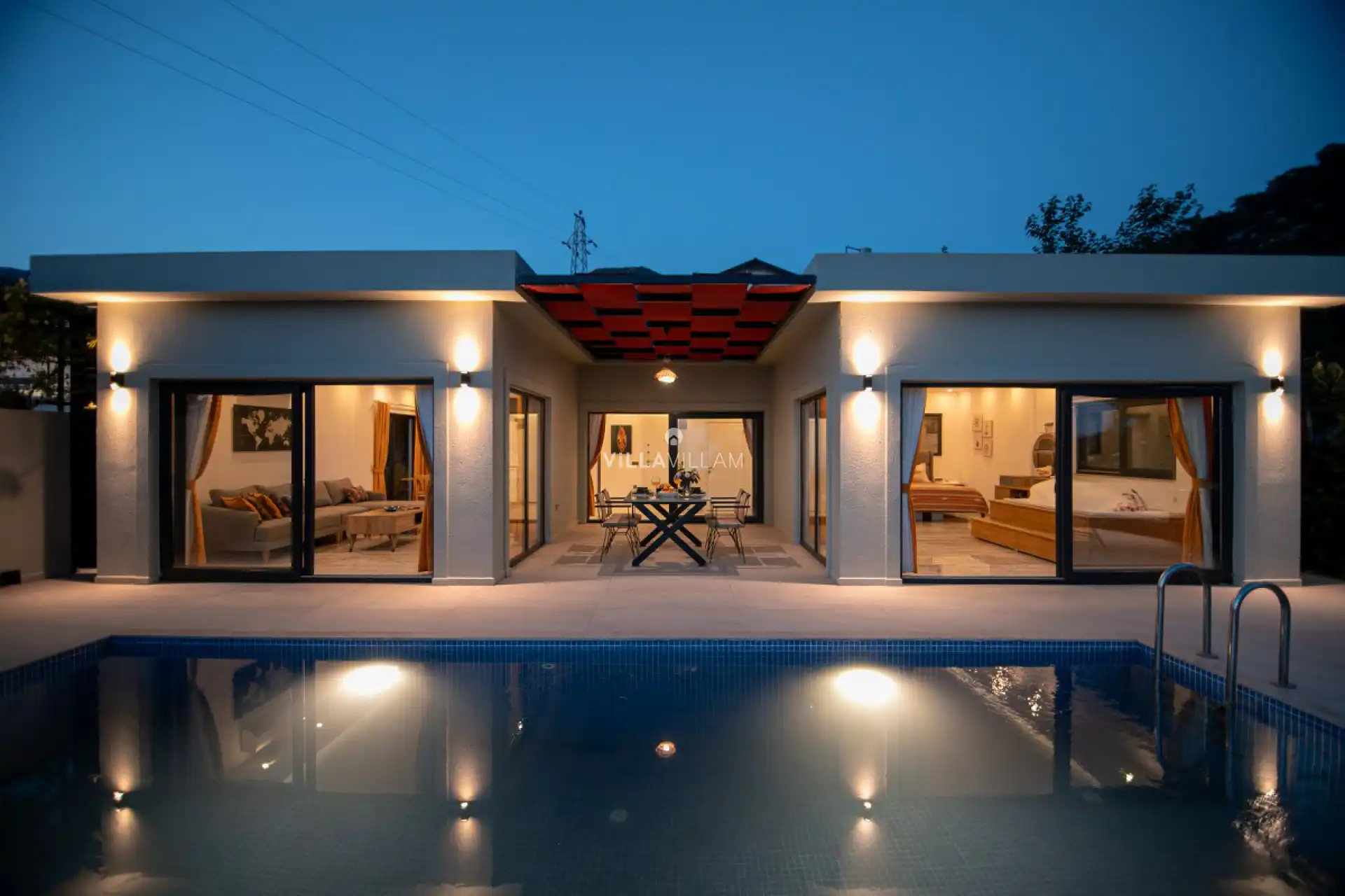 Korunaklı havuz alanına sahip olan villanın, havuz terasında kapasiteye uygun şezlong takımı, oturma grubu ve barbekü alanı bulunan villanın; yine havuz terasına açılan oturma odası ve donanımlı mutfağı, bir yatak odasında çift kişilik yatak ve jakuzi mevcuttur, eğlenceli ve keyifli bir tatil yapabilir ailenizle beraber güzel anılar biriktirebilirsiniz. İhtiyaçlarınız gözetilerek dizayn edilmiş detaylara sahip misafirlerimizin ilk tercihleri arasında yer almaktadır.