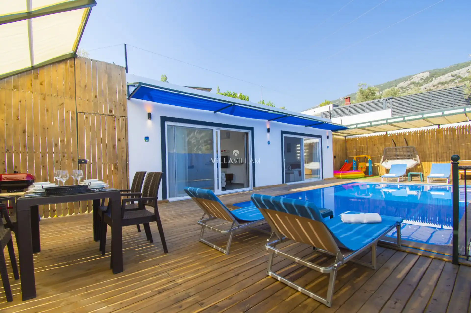 Kalkan İslamlar bölgesinde yer alan villa, 2 yatak odasıyla 4 kişilik konaklama kapasitesi sunmaktadır. Korunaklı havuz alanı ve aktivite alanlarıyla dikkat çeken villa, çekirdek aile ve balayı çiftleri için popüler seçenekleri arasında üst sıralarda yer almaktadır.