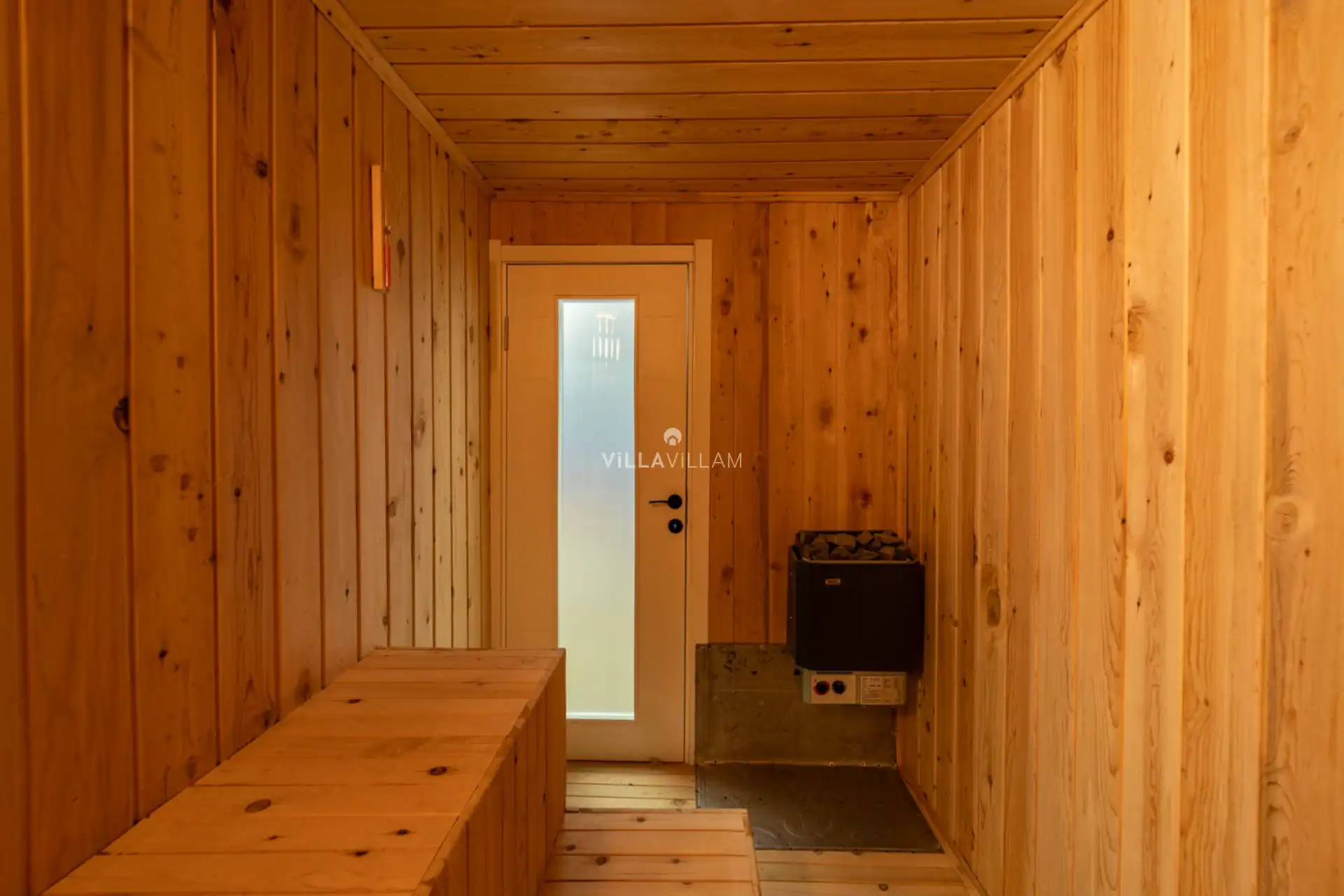 Geniş havuz terasına açılan konforlu oturma odası donanımlı açık mutfağı bulunan villanın bir yatak odasında çift kişilik yatak, ebeveyn banyosu ve jakuzi; diğer yatak odasında çift kişilik yatak, bir tek kişilik yatak ve ebeveyn banyosu bulunmakta olup konforlu bir tatil için her detay düşünülmüştür.
