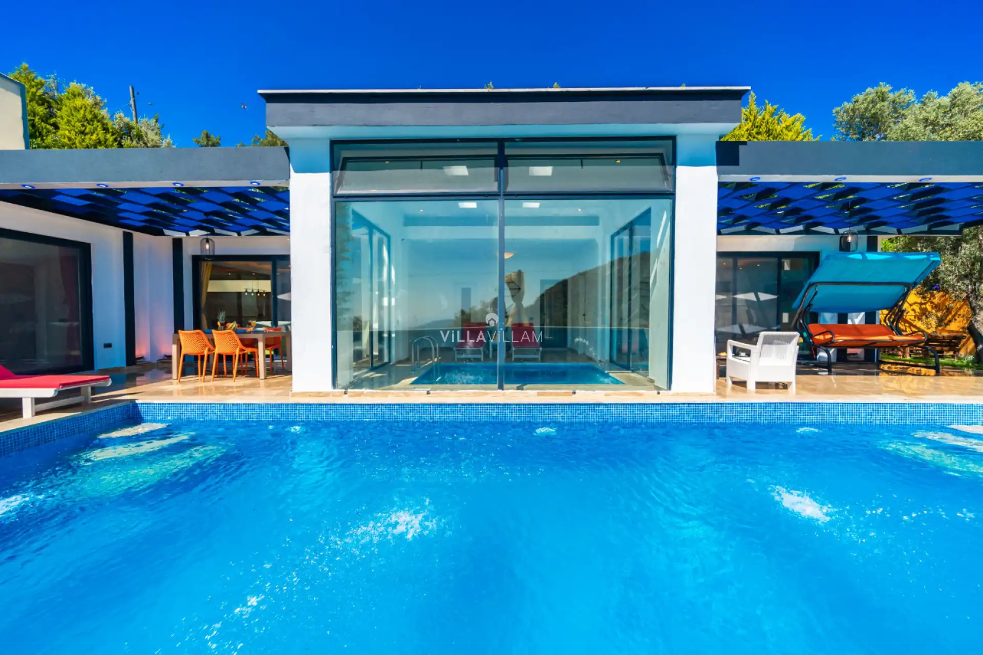 Kalkan İslamlar bölgesinde bulunan villa 2 yatak odasıyla 5 kişilik konaklama kapasitesi sunmaktadır. Kapalı ısıtmalı havuz, sauna, hamam ve jakuzi gibi imkanlarıyla yaz kış hizmete sunulan villa çekirdek aile ve balayı çiftleri için uygundur.