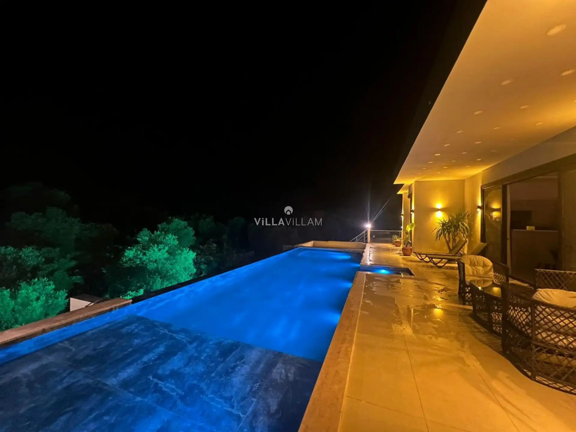 Geniş yapıya sahip havuz alanında keyfinizi ikiye katlayacak oturma grupları, şezlong takımı ve özel barbekü köşesi yer almaktadır. Dolu dolu bir villa tatili geçirebilmeniz adına iç donanımı da oldukça zengin özellikte olan villamızın tüm mobilyaları, konforlu olmasının yanında modern bir anlayışla seçilmiştir. Oturma odası ve tüm ihtiyaçlarınıza karşılık verecek mutfağı; birinci yatak odasında bir çift kişilik yatak, jakuzi ve ebeveyn banyosu; ikinci yatak odasında bir çift kişilik yatak ve ebeveyn banyosu; üçüncü yatak odasında ise bir çift kişilik yatak ve ebeveyn banyosu bulunmaktadır.