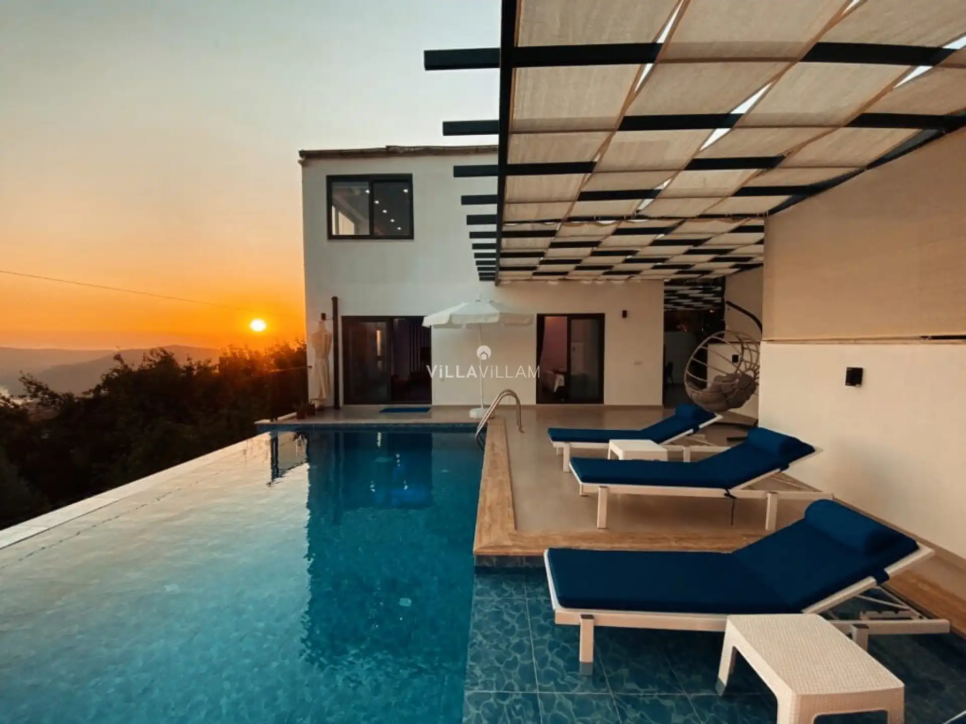 Kalkan kördere Sarnıçbaşı mevkiinde bulunan villa, 2 yatak odası ve korunaklı havuz alanı ile 4 kişilik konaklama kapasitesi sunmaktadır. Panoramik deniz manzarasına sahip olan villa, balayı çitfleri ve aile grupları için uygun seçenekler arasındadır.