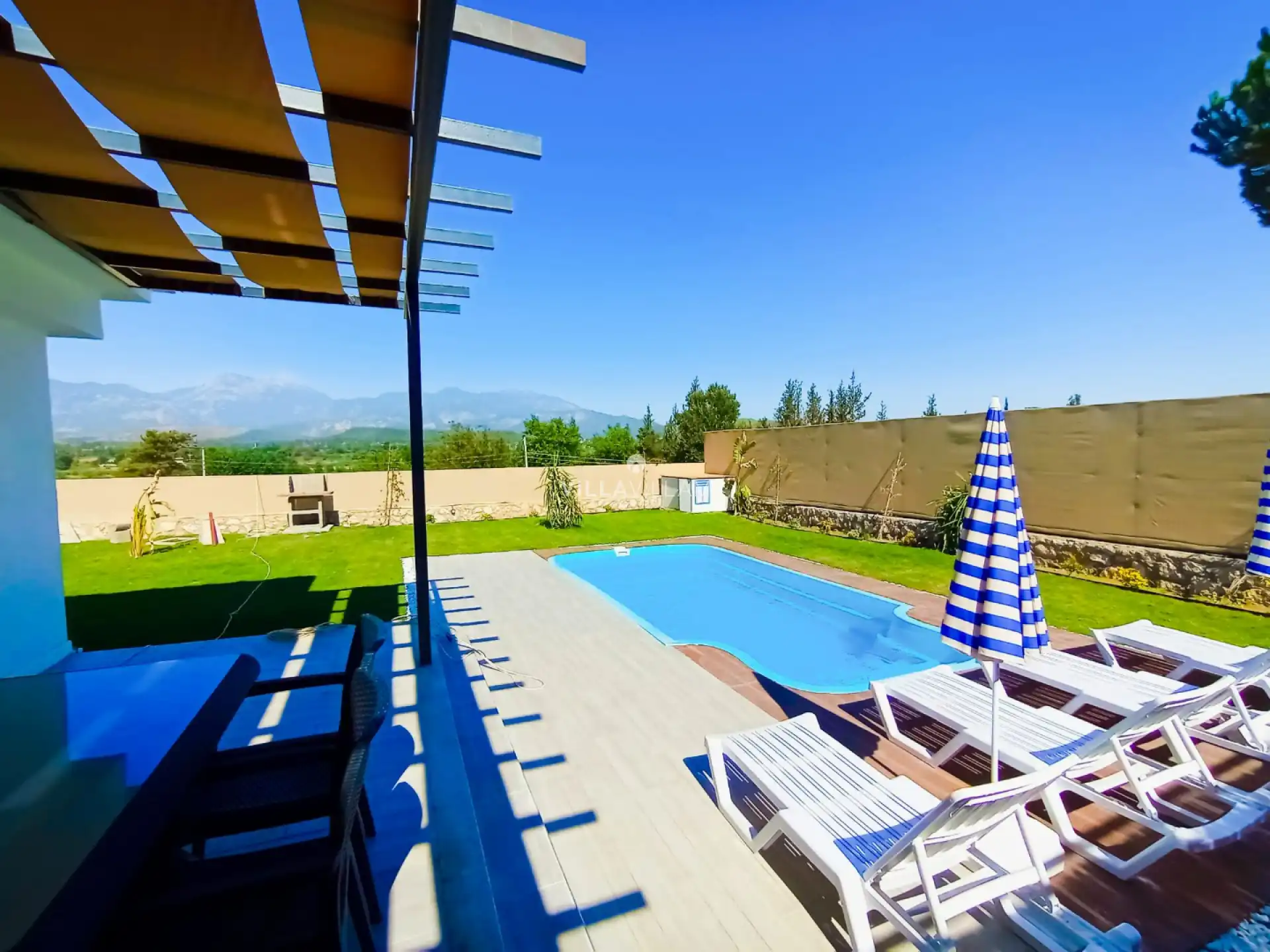 Havuz terasında; şezlong takımı, rahat bir oturma grubu ve barbekü alanı yer almaktadır. Havuz alanı, keyifli vakit geçirmek ve dinlenmek için mükemmel bir ortam sunar. İç mekanda ise konforlu oturma odası, tam donanımlı açık mutfağı; birinci yatak odasında çift kişilik yatak ve ebeveyn banyosu; ikinci yatak odasındaiki tek tek kişilik yatak ve banyo bulunmaktadır.